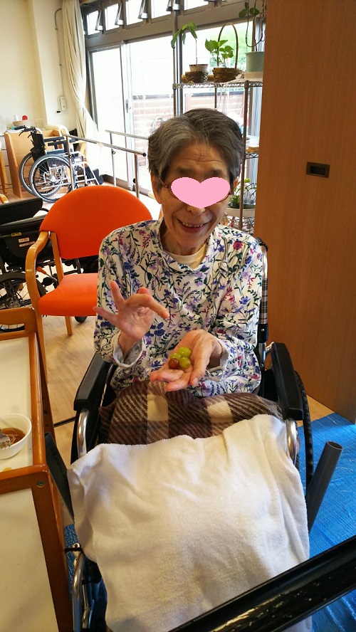流れてきた葡萄をゲット!素敵な笑顔です!![/caption]