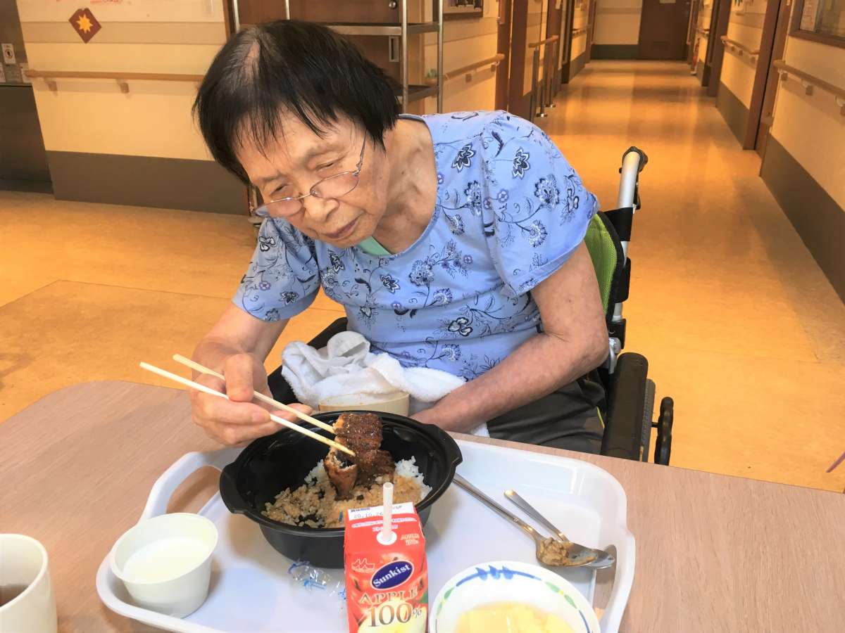 今日はとっておきの日!利用者様が楽しみにしていた≪お楽しみ昼食会≫!うな丼に杏仁豆腐etc・・・。