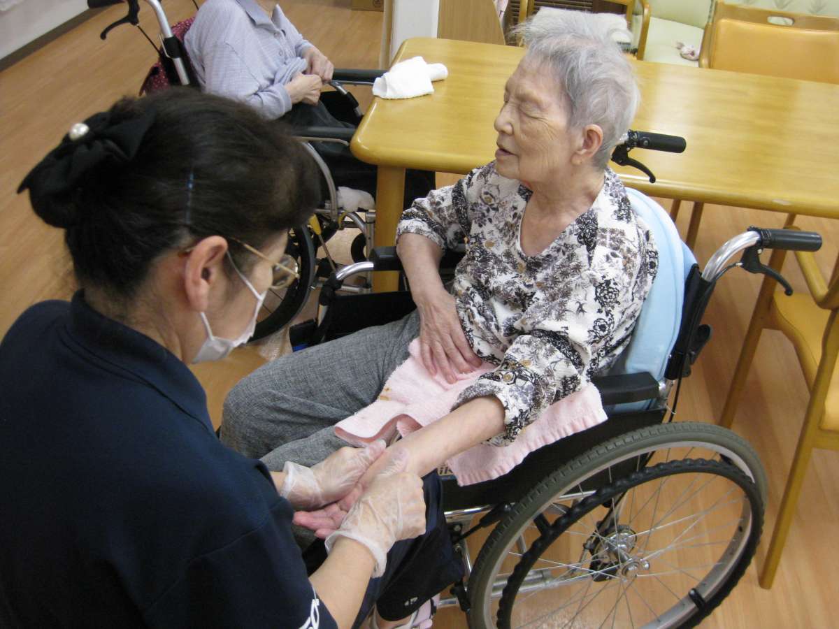 身体を段々と動かさないと、手の拘縮がおきてきて身体が動かなくなってきているので、GHあきがせ内にてリンパマッサージを行いました!! 少しでも動かせる時間が長くなればと思い少しずつ行っています。行っている時は《気持ちいい・・ 有り難う!! 》 「痛いよ~ 何するのよ~」と仰らています。 でも、気持ちいいようで静かに付き合って下さっています。時間のある時は関わっていきたいと思います。