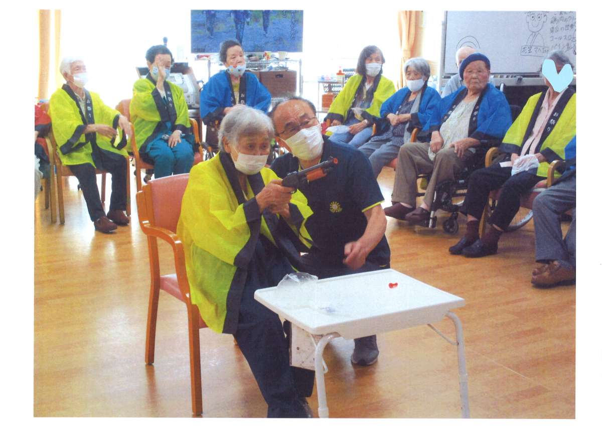 こんにちは。デイサービスセンター遊・川越南大塚です。8月3日は夏のお待ちかね『夏の縁日遊び』を開催しました♪昔懐かしい夏祭りを思い出していただきました(*^-^*)射的ではとても真剣に欲しい物を狙っていました!!皆さま楽しそうでしたね(*´ω`)