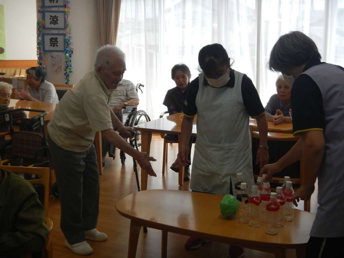 そんな中、納涼祭で行なわれるゲームのひとつ、「ボーリング」を練習する光景を目にしました。
