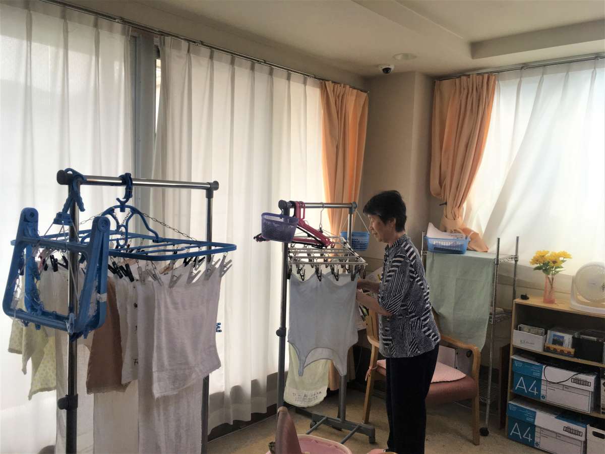 「いつでも声を掛けてくださいね。」たくさんの洗濯物を干して下さっています。