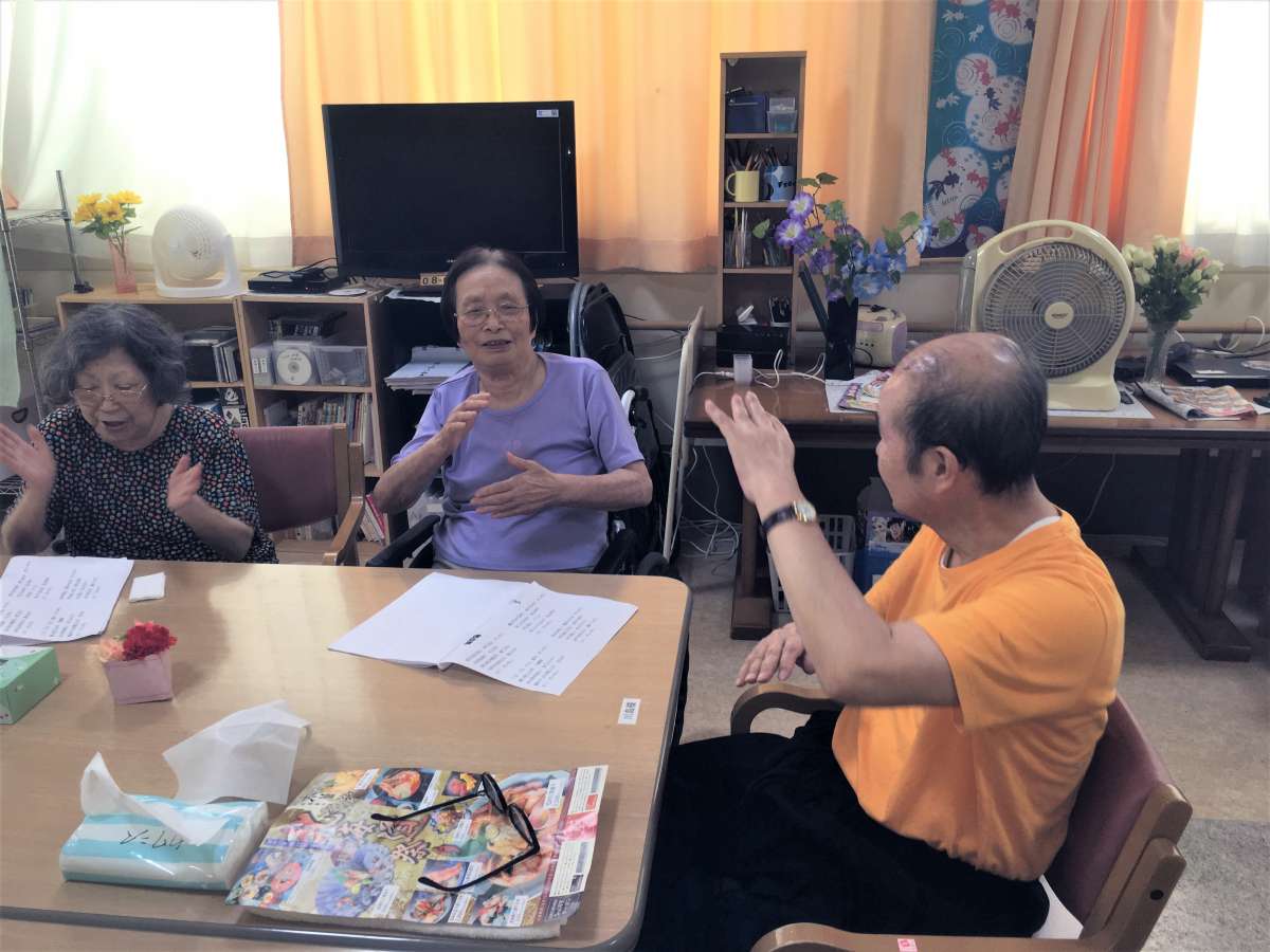 《みんなの家・上福岡》では、午前中も午後もレクの時間を大切にしています。今は感染防止対策でボランティアさんの受け入れを中断していますが、ちぎり絵や脳トレドリル、塗り絵や懐メロ合唱、工夫を凝らしたレクを充実させています。もちろん、日々お手伝いも頑張って頂いておりますよ。