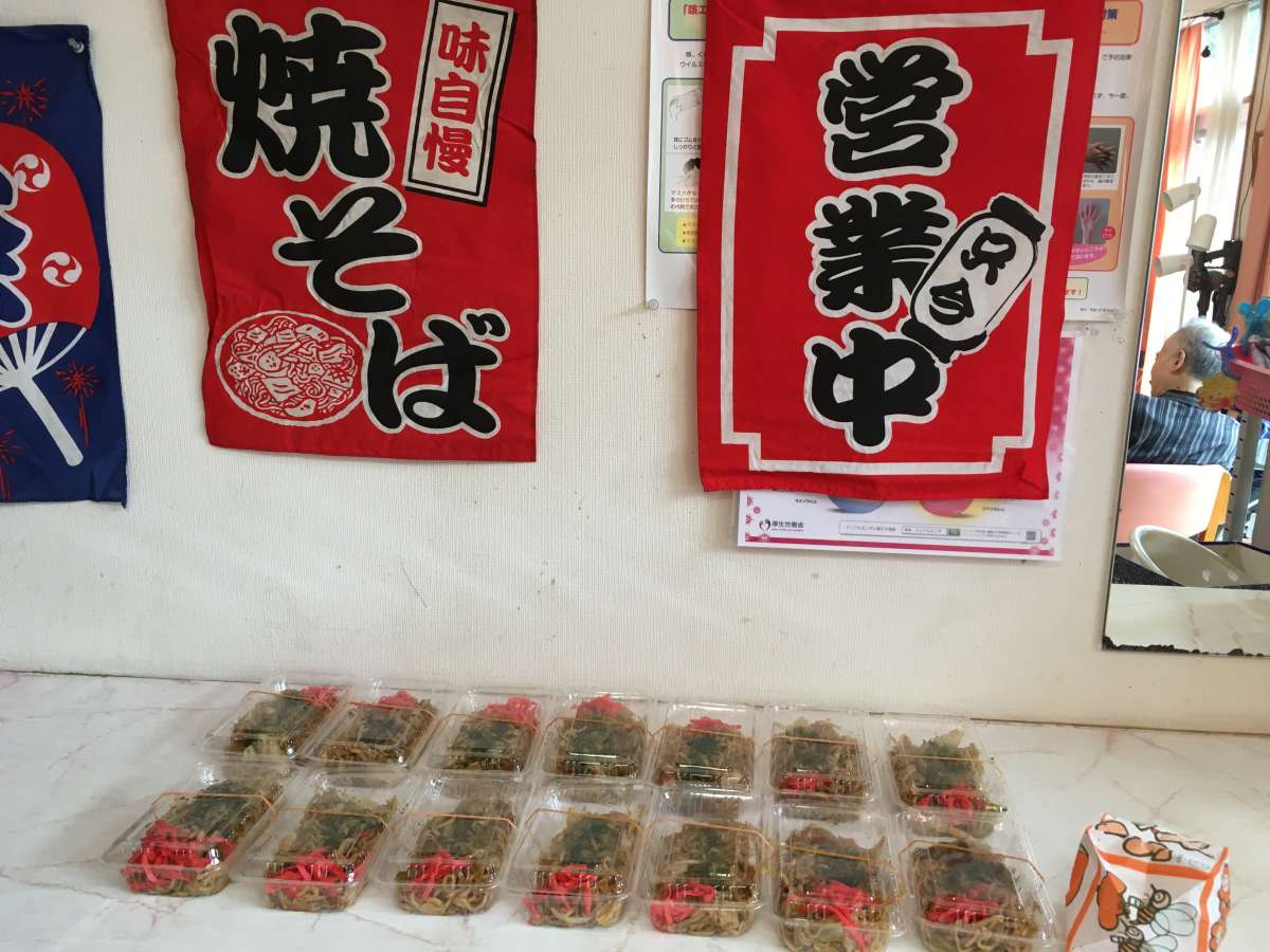 やきそば、お好み焼き、やきとり、チョコバナナを用意しました。