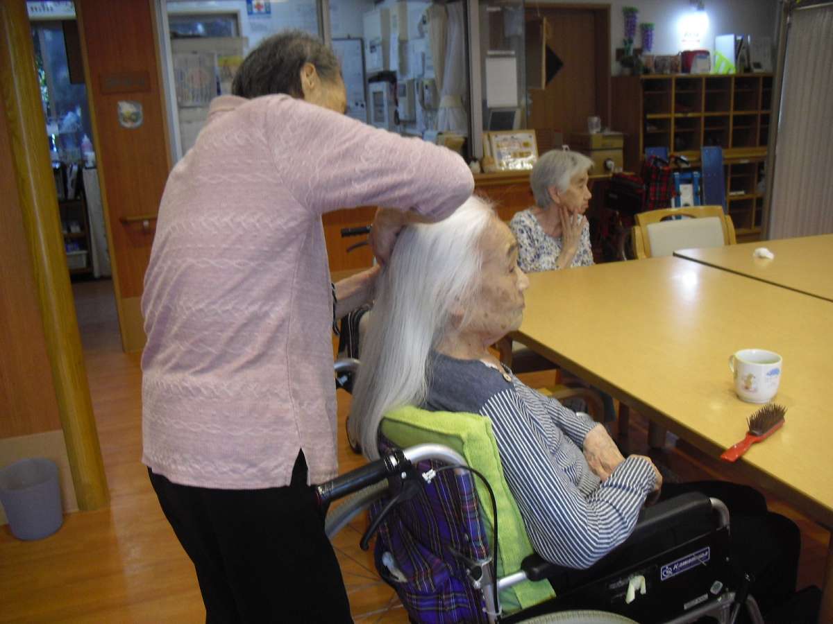 ご利用者様の髪の毛を結って下さっているご様子です(*^-^*)