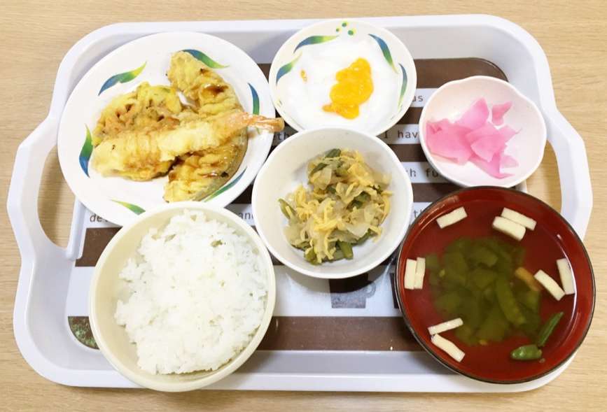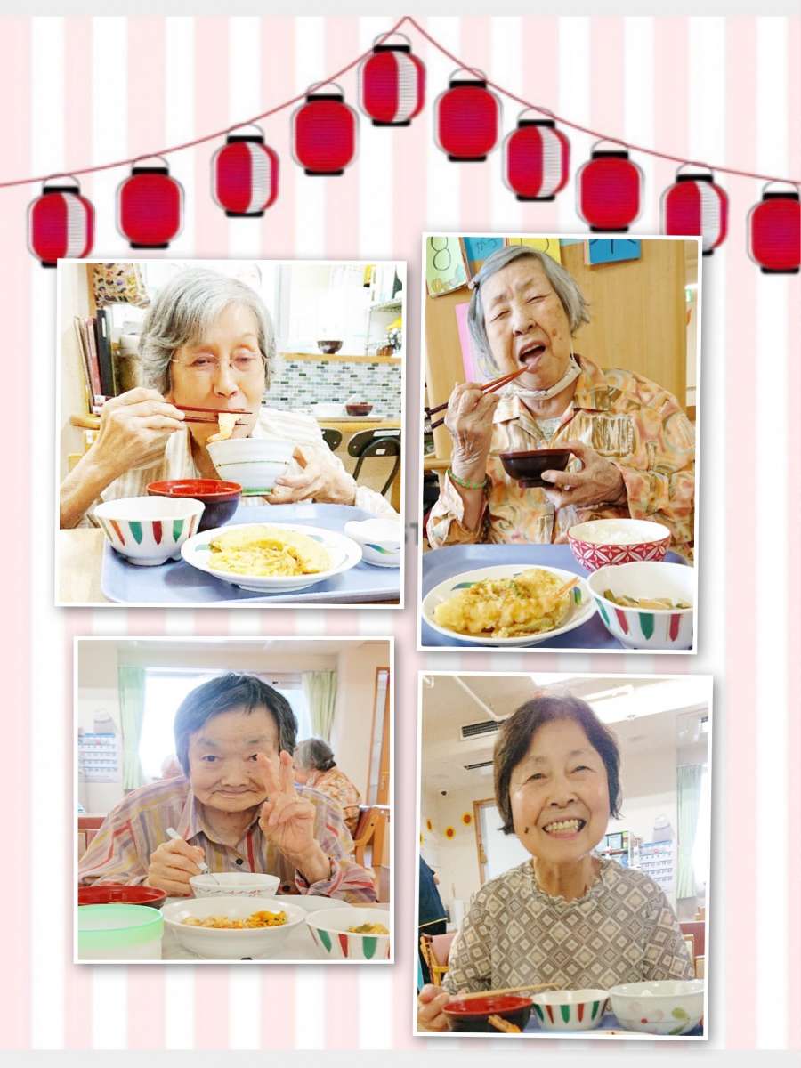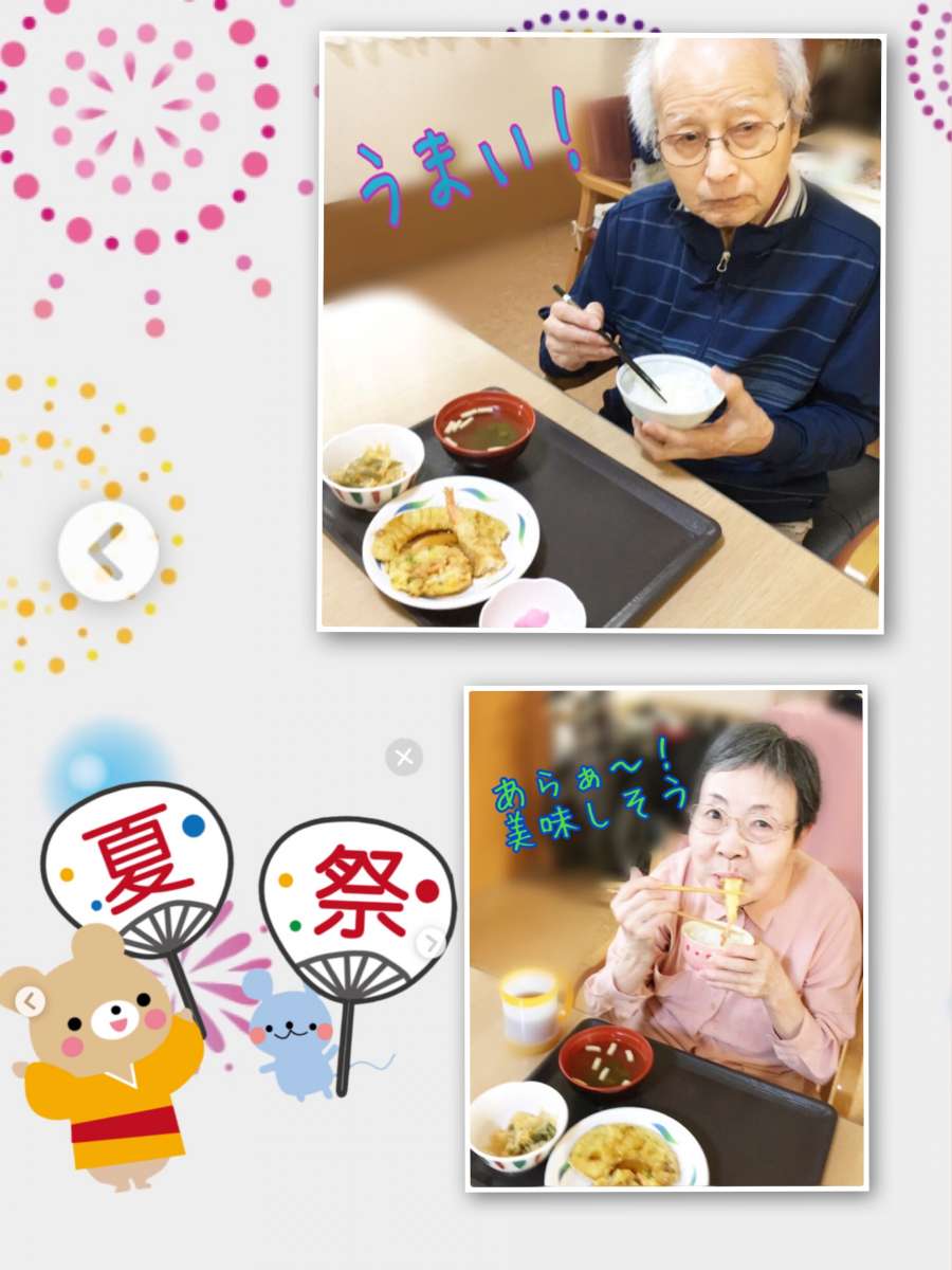 3階の利用者様、サクサクの衣の天ぷらをとても美味しそうにはかぶりついておられます。