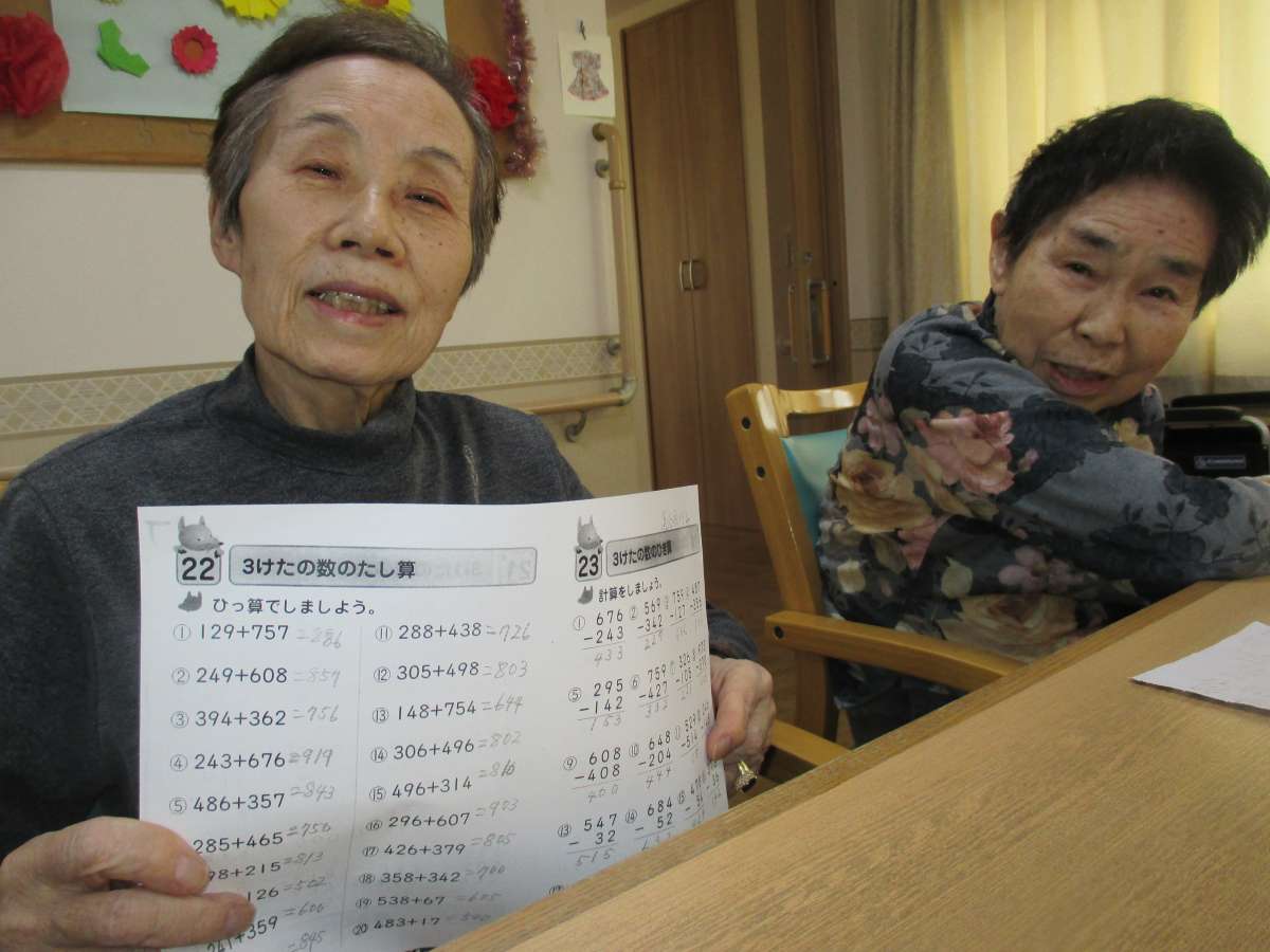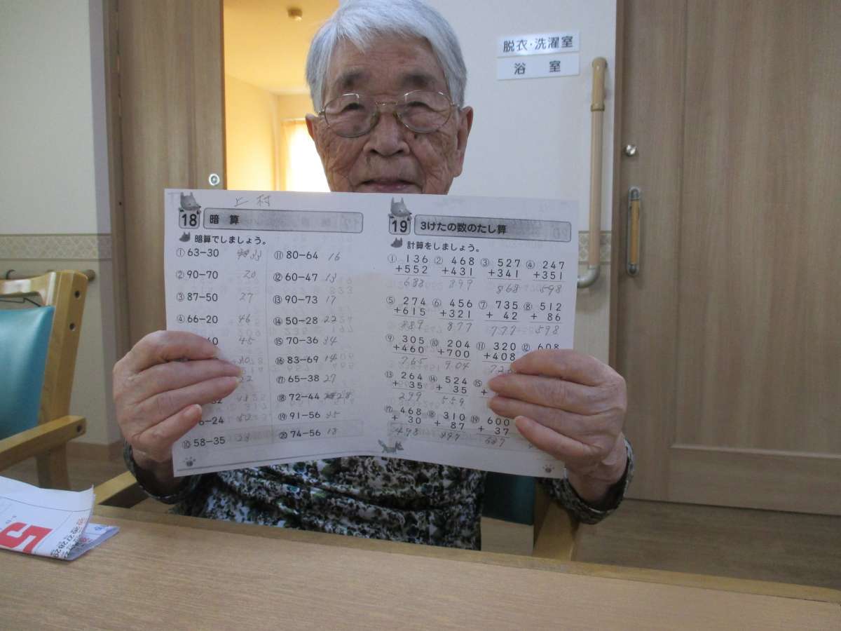 本日のレクで、脳トレとして計算プリントやことわざクイズの様子をお伝えします。