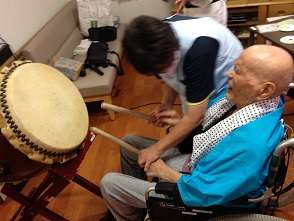 こんにちは!グループホームみんなの家・三郷2です。ブログをご覧頂き有難うございます。8月20日に夏祭りを開催致しました。毎年恒例スタッフによる太鼓演奏♪利用者様にも楽器をお渡しし、一緒に盛り上がりましたよ~一気に夏祭りっぽくなりました!
