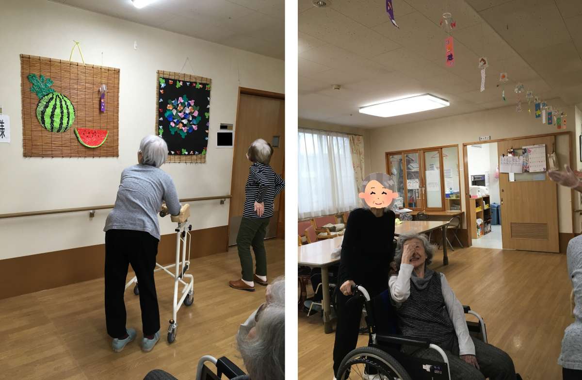 七夕当日の日に気分転換として、他フロアの短冊を見に行こう!とのことで1Fフロアの利用者様が西フロアに訪れた時のものだったと思います(‘Д’)