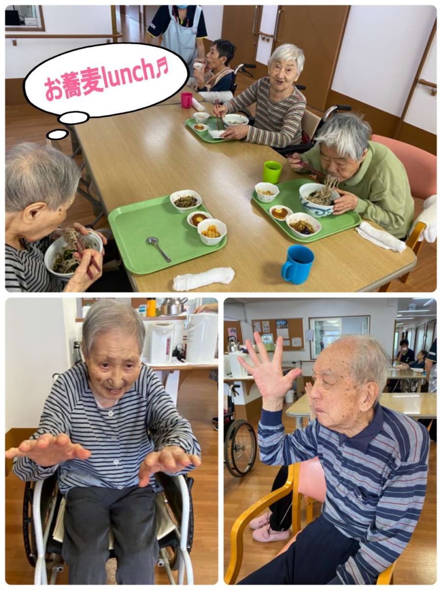 こんにちは。みんなの家・大宮内野本郷です(^。^) 花の丘公園そば。さいたま市西区。 宮原駅西口よりバス6分&徒歩4分のところにある施設です。 ここ数日少し涼しくなったかな♡と思ったら、、、今日は台風の影響で暑かったですね。 体調管理が大変ですが、ストレスを溜めずしっかり食事と睡眠をとって乗り切りましょう(^。^) さて二階の入居者様方は、今日も30分間しっかりと「集団体操・口腔体操・早口言葉」に参加され、意欲的にお身体を動かされていましたよ☆ そしてお待ちかねlunchは、お蕎麦♡ 『暑いから、おろし蕎麦最高だね!嬉しい♬」と、大好評でした♪( ´θ`)ノ