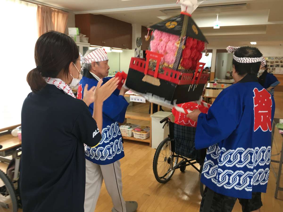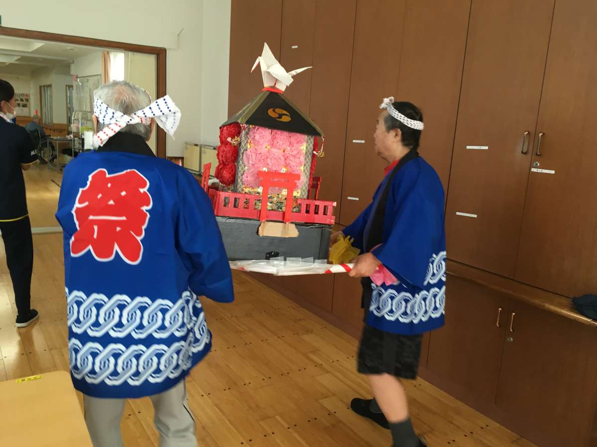 お祭りの締めにはご利用者様に参加していただき、おみこしを担ぎました。