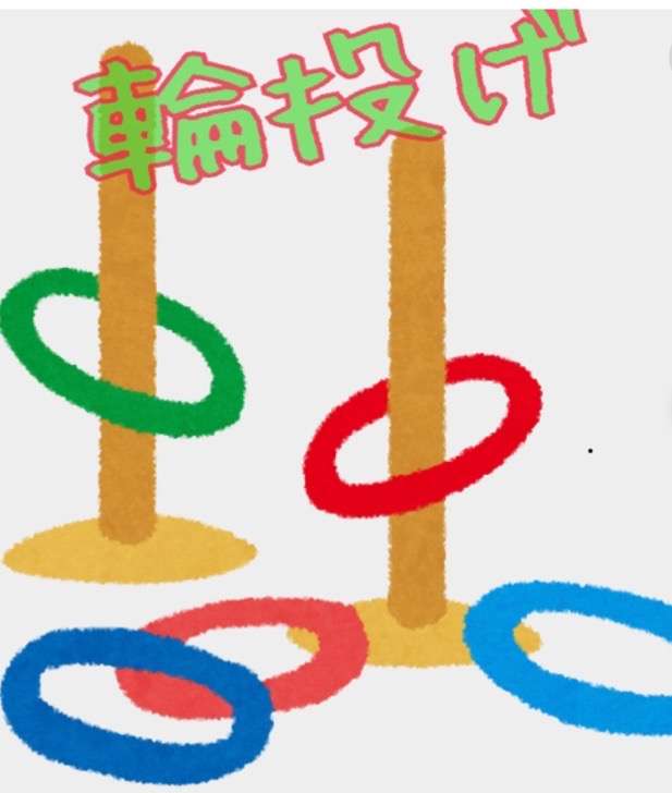 スタッフ手作りの輪投げセットに向かい、