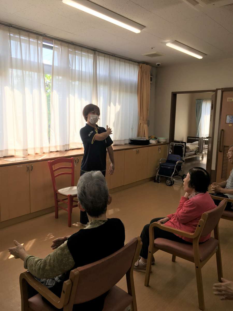職員が前に立って一緒に動作の確認を行いました。