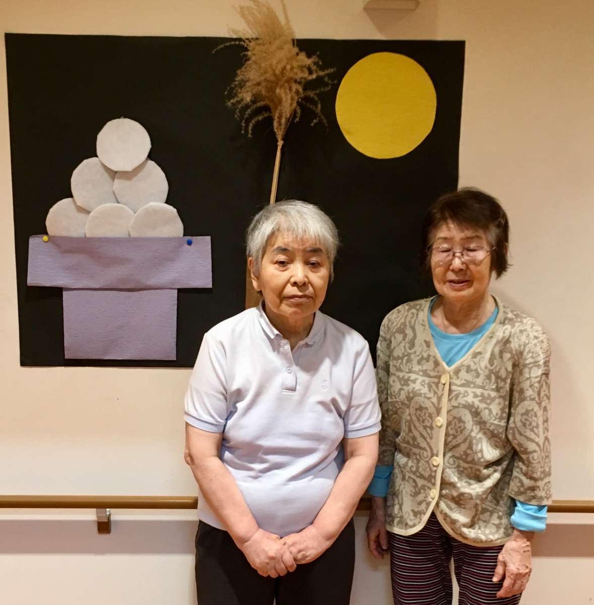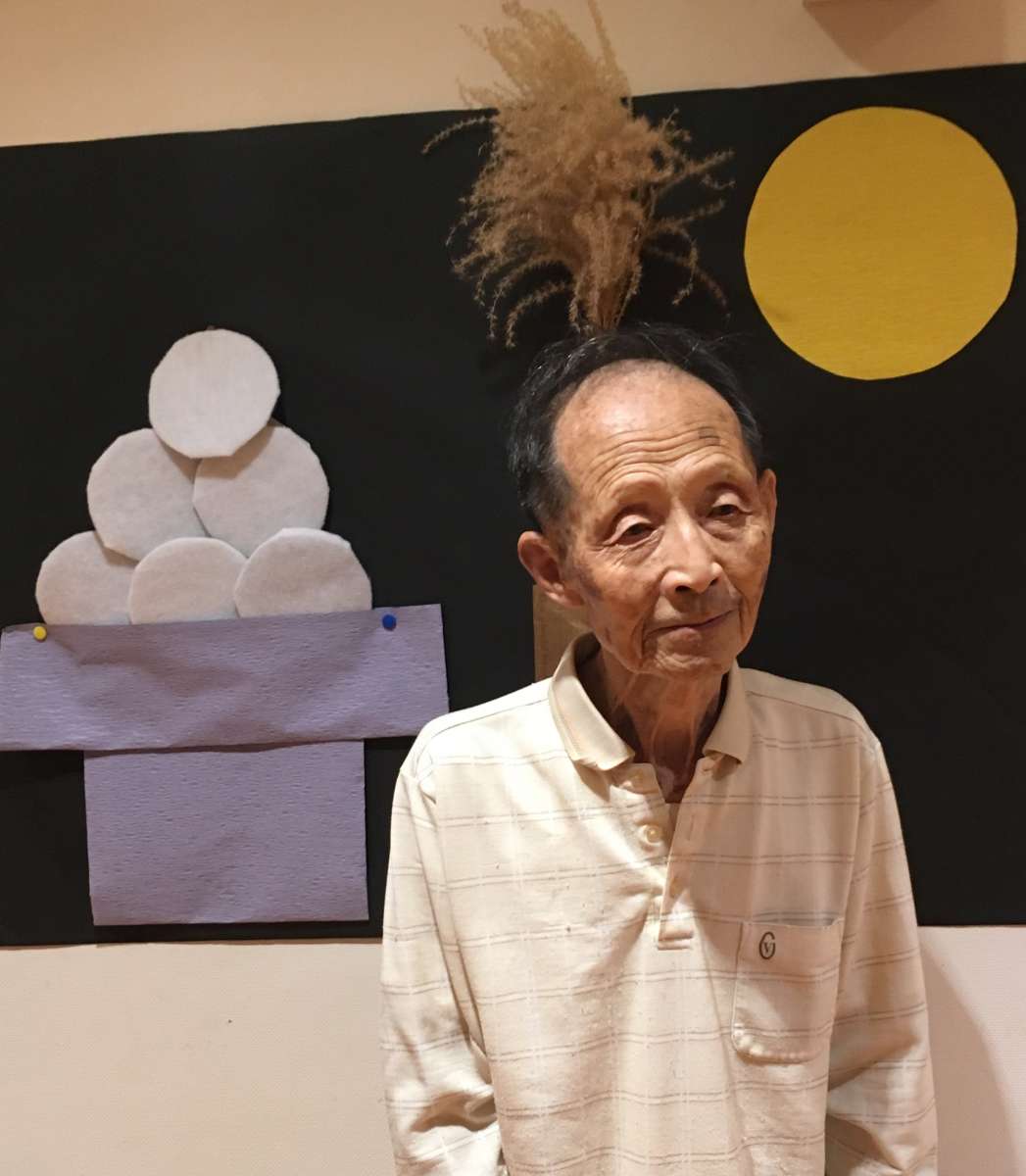 お月見の掲示物の前で撮影しました^ ^