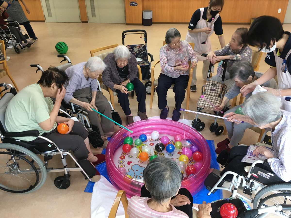 お祭りということもあり皆様には童心に帰って頂き、ヨーヨー釣りをしていただきました(≧▽≦)ゞ
