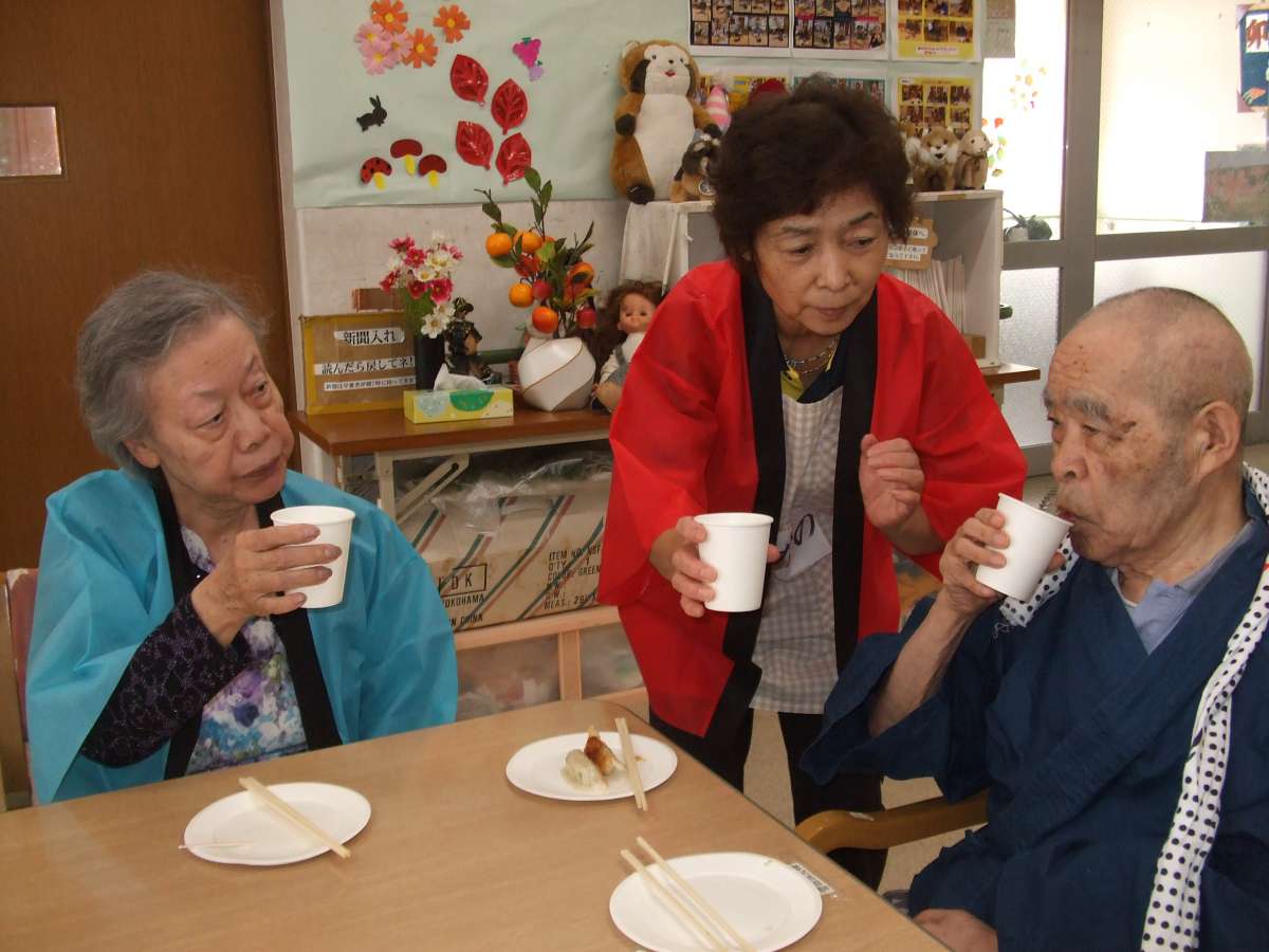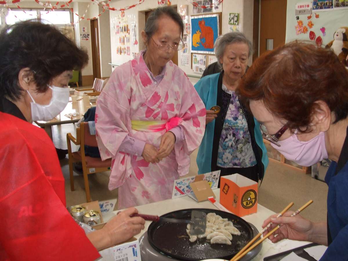 本日はコロナウイルス流行で夏祭りなどにも行けないので、気分転換にフロアにて屋台風のおやつレクを行いました!!