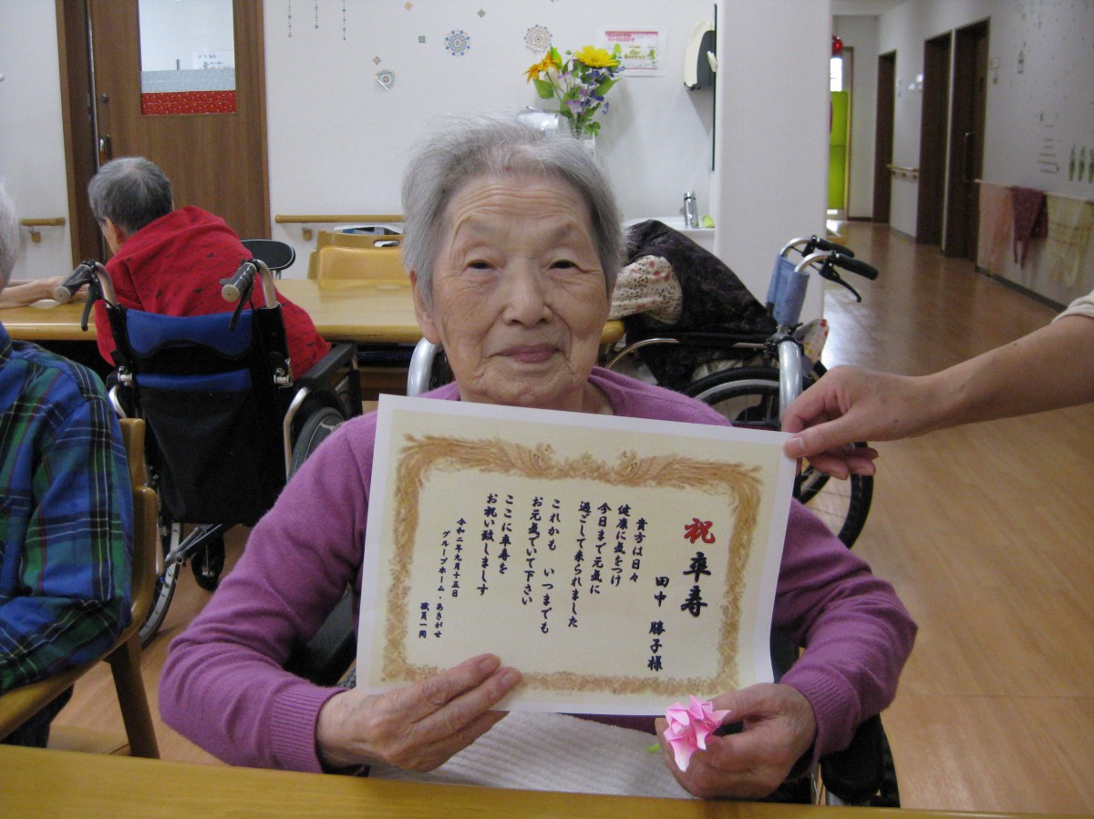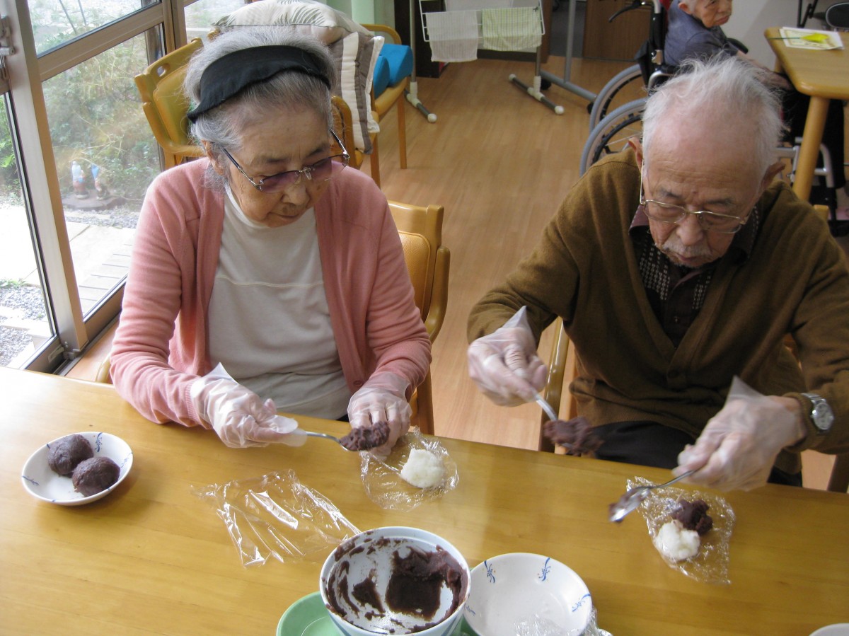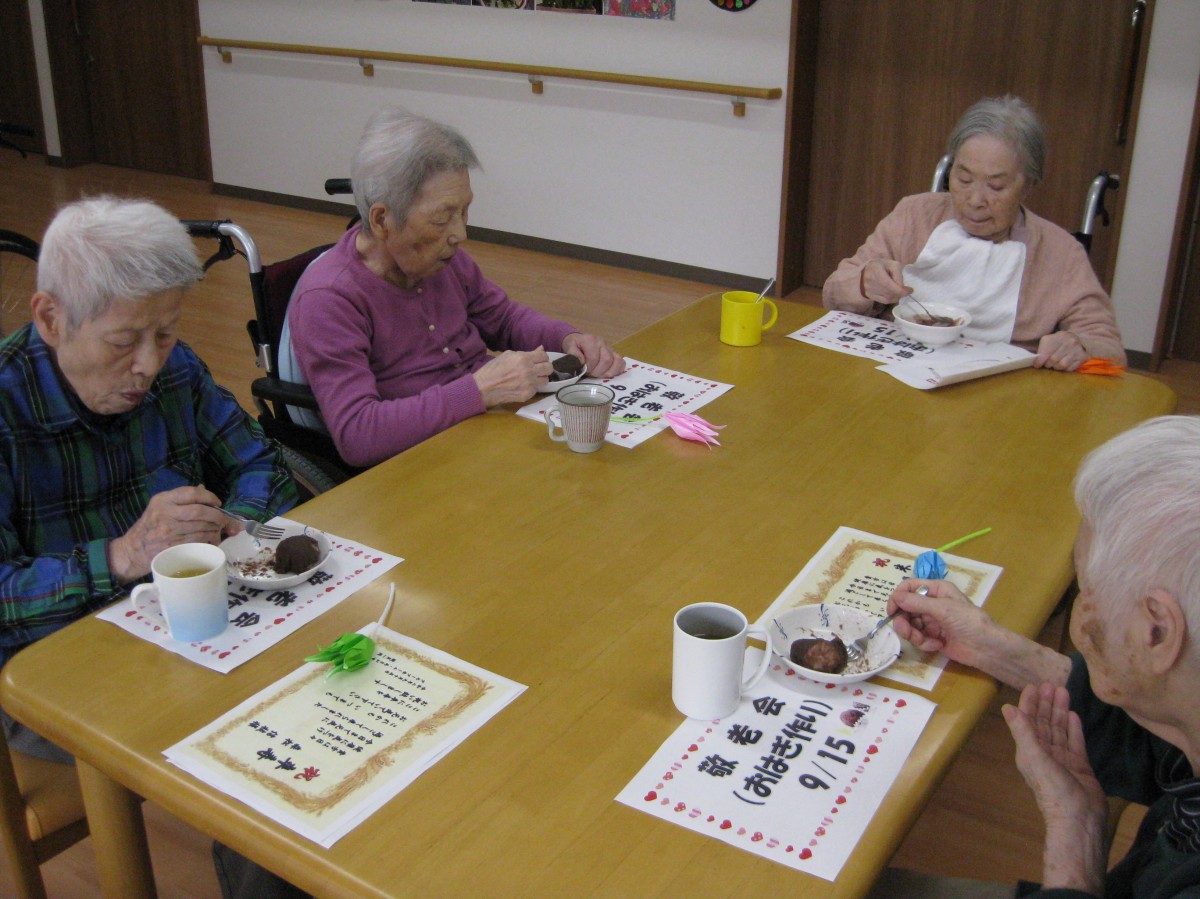 9/15(火)に敬老会レクを行いました!皆様からの希望のあった手作りのおはぎ作りを行い、職員から感謝状とお花を贈らせて頂きました☆