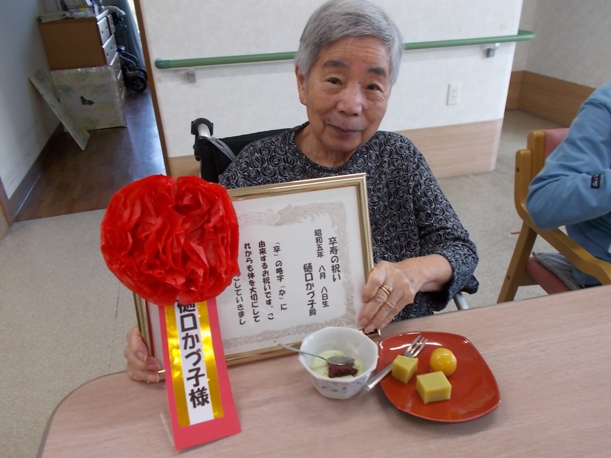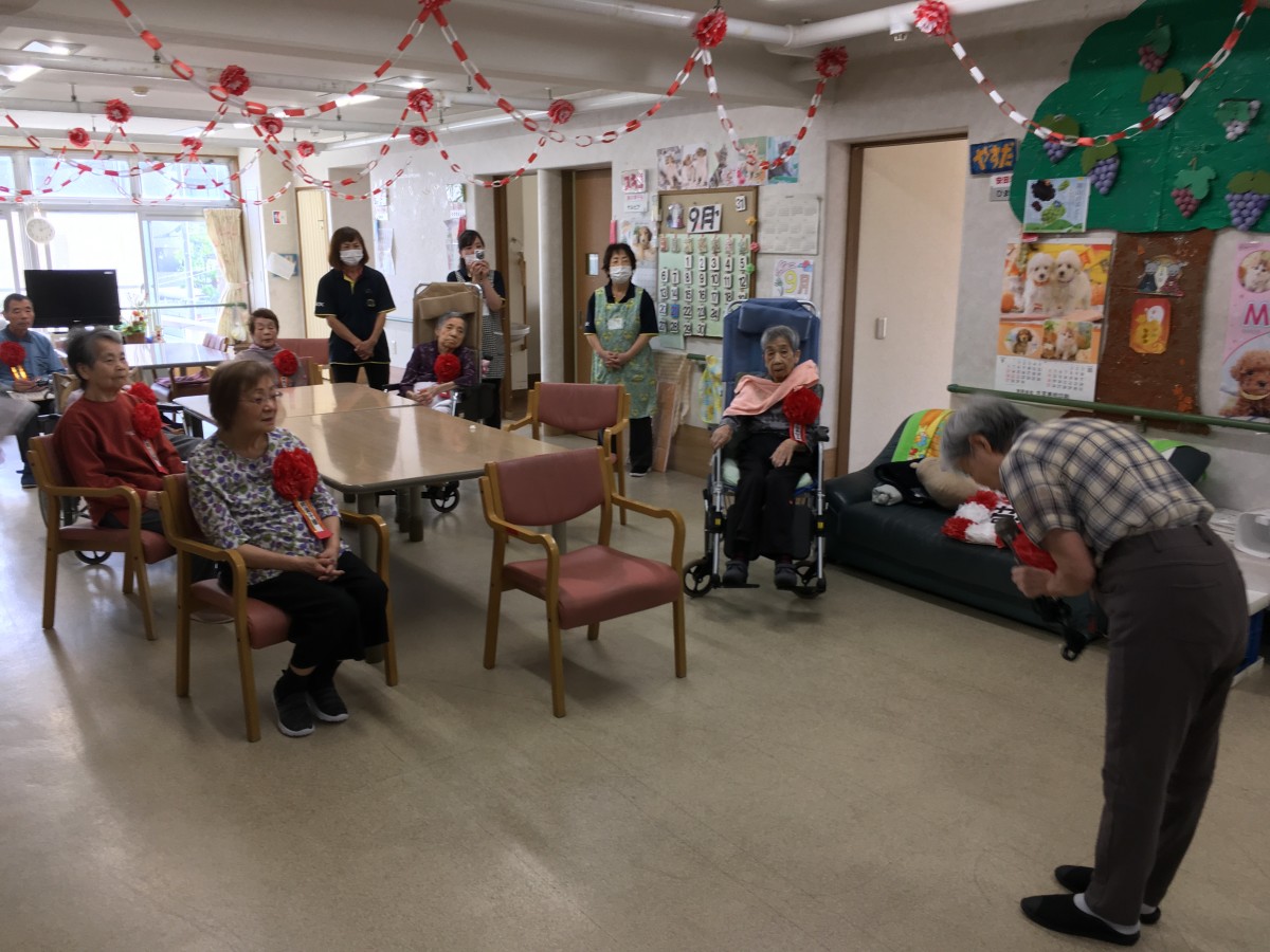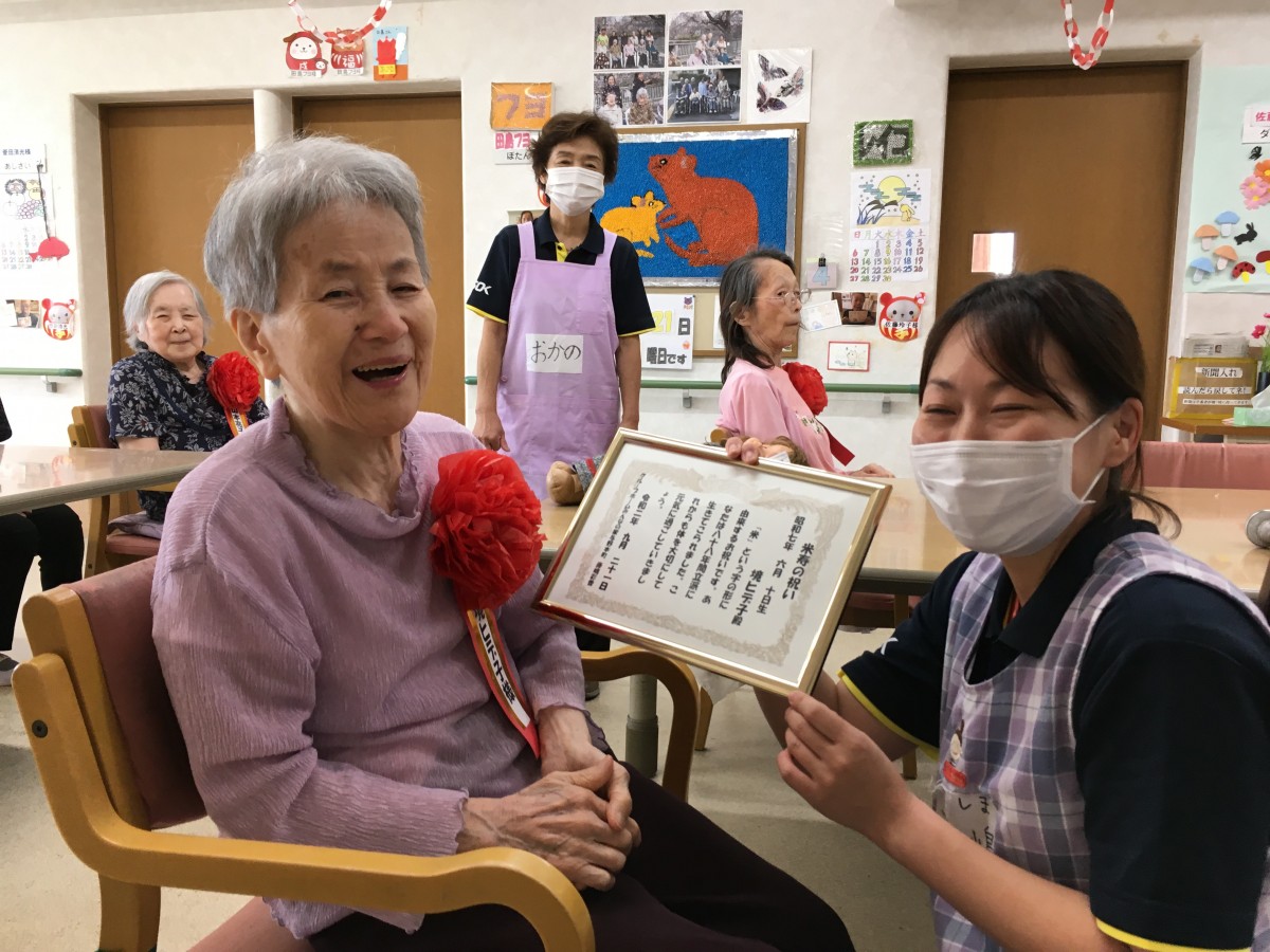長年、社会や家族に尽くしてこられたご利用者の皆様をねぎらい、また日頃の感謝の気持ちを込めて、ご長寿をお祝いさせていただきました。