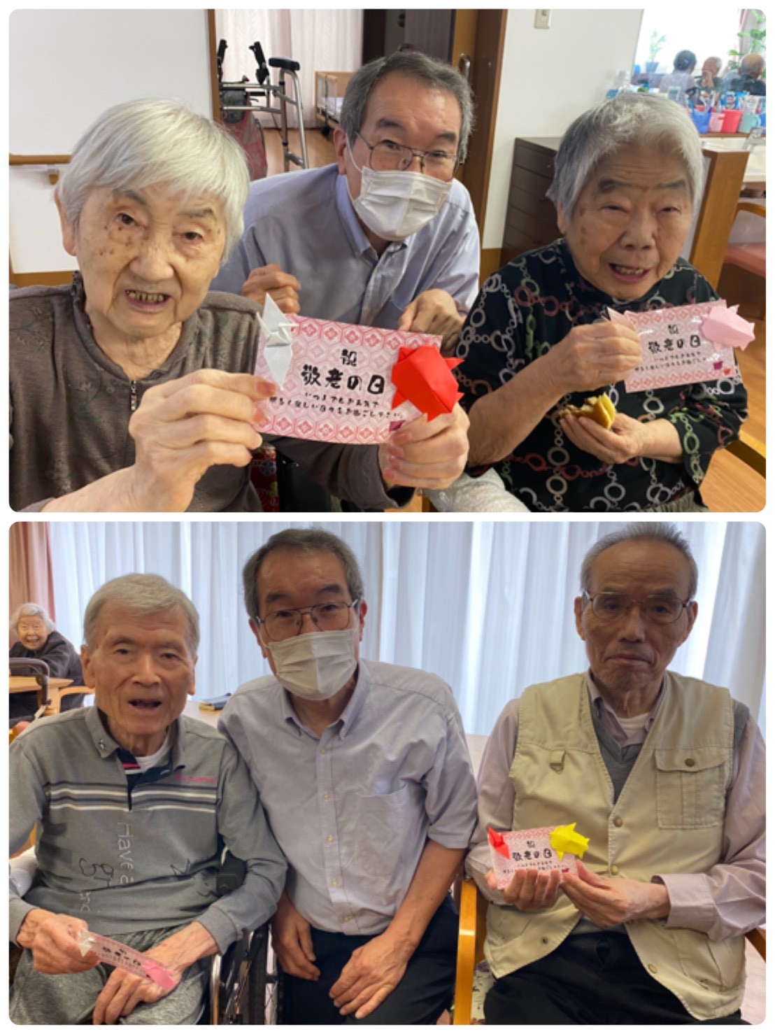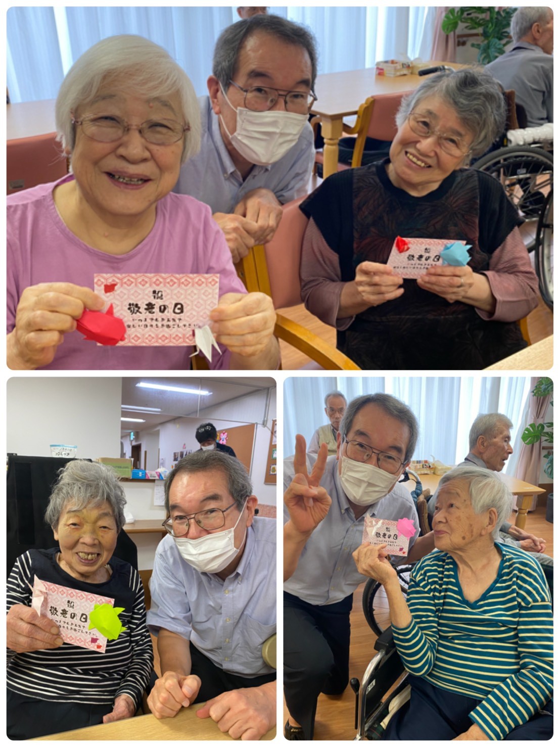 こんにちは。みんなの家・大宮内野本郷のコダマです(^。^) 花の丘公園そば。さいたま市西区。 宮原駅西口よりバス6分&徒歩4分のところにある施設です。 リニューアルに伴い、ブログupが遅れてしまい申し訳ありませんでした。今月からまた入居者方の沢山の笑顔を発信していきたいと思います。 先月みんなの家・大宮内野本郷では、『敬老の日イベント』を開かせていただきました♡ 『多年にわたり社会に尽くされてきたお年寄りを敬愛し、長寿を祝う日』ですね。 今年はコロナ禍で一階と二階の入居者様別々での開催になってしまいましたが・・・ スタッフからの心のこもったお祝いのカードと、美声が自慢の♬ナースからの『ハナミズキ』の歌のプレゼントや♡♡♡どら焼きでお祝いさせて頂きました♡加藤ケアマネとも記念撮影♬沢山の笑顔が見られました♡ 皆様、おめでとうございま〜す(祝)♬ これからもお元気で♡みんなの家・大宮内野本郷で楽しい思い出を沢山作っていきましょうね(๑˃̵ᴗ˂̵)