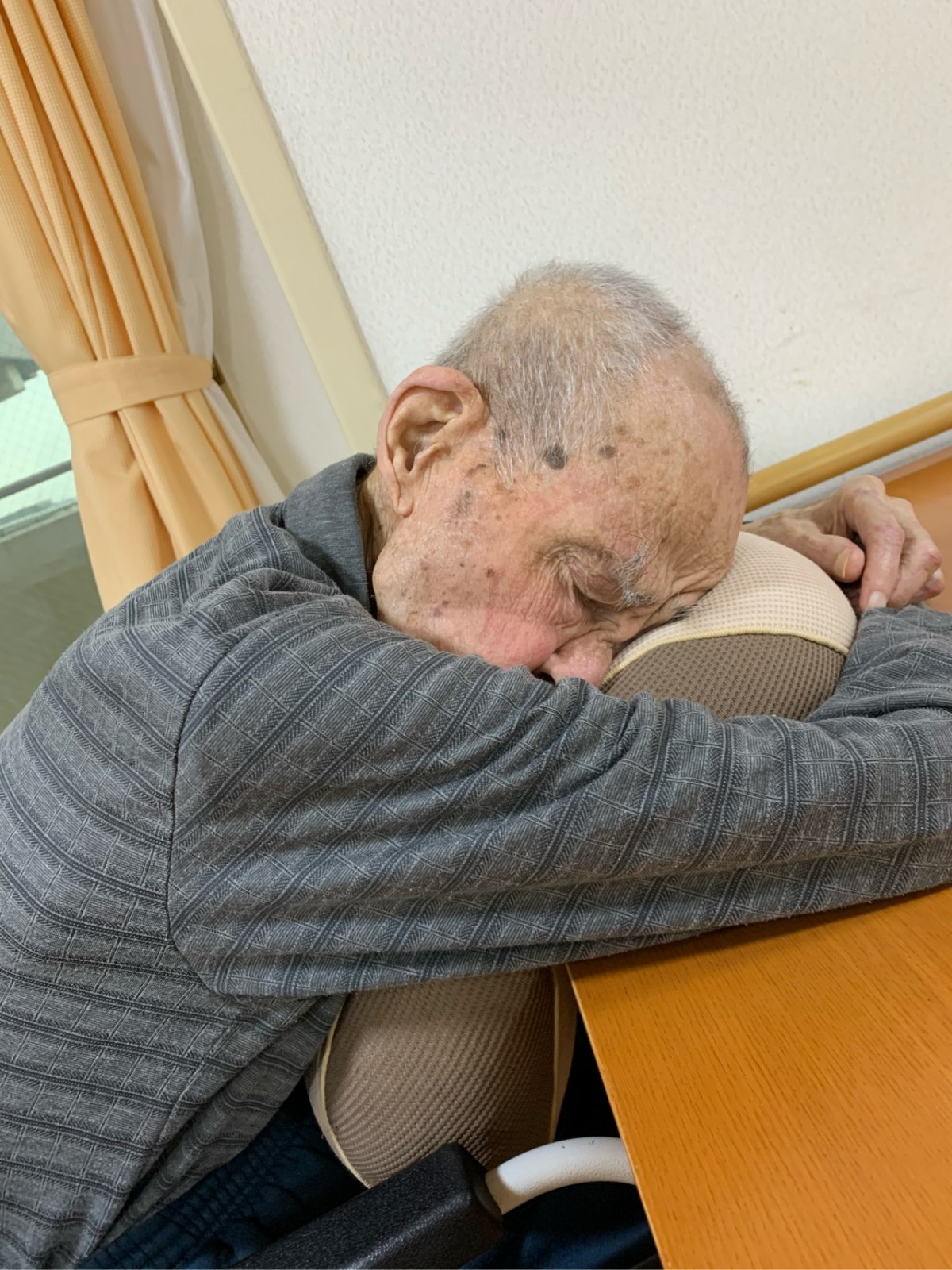 テーブル席で、クッションを抱いて居眠りするのが、最近、気持ちいい100歳様