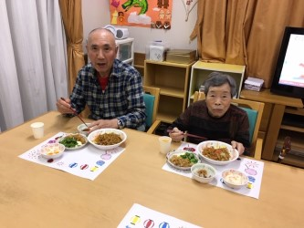 〇やきそば〇からあげ〇味噌田楽〇たまごスープ〇杏仁豆腐 職員お手製デザート