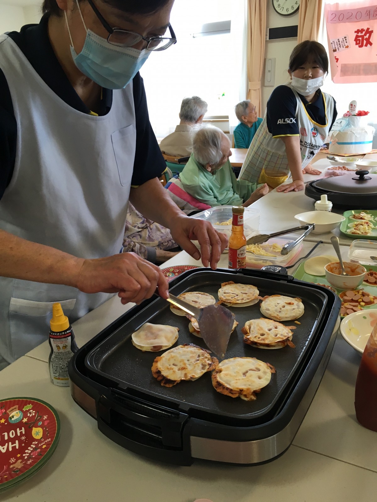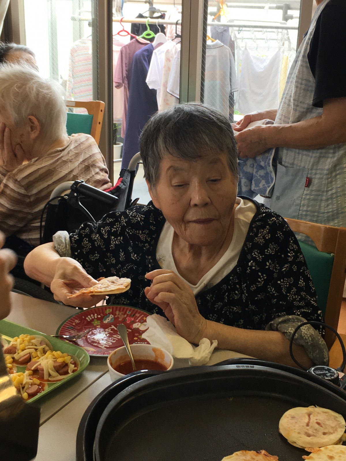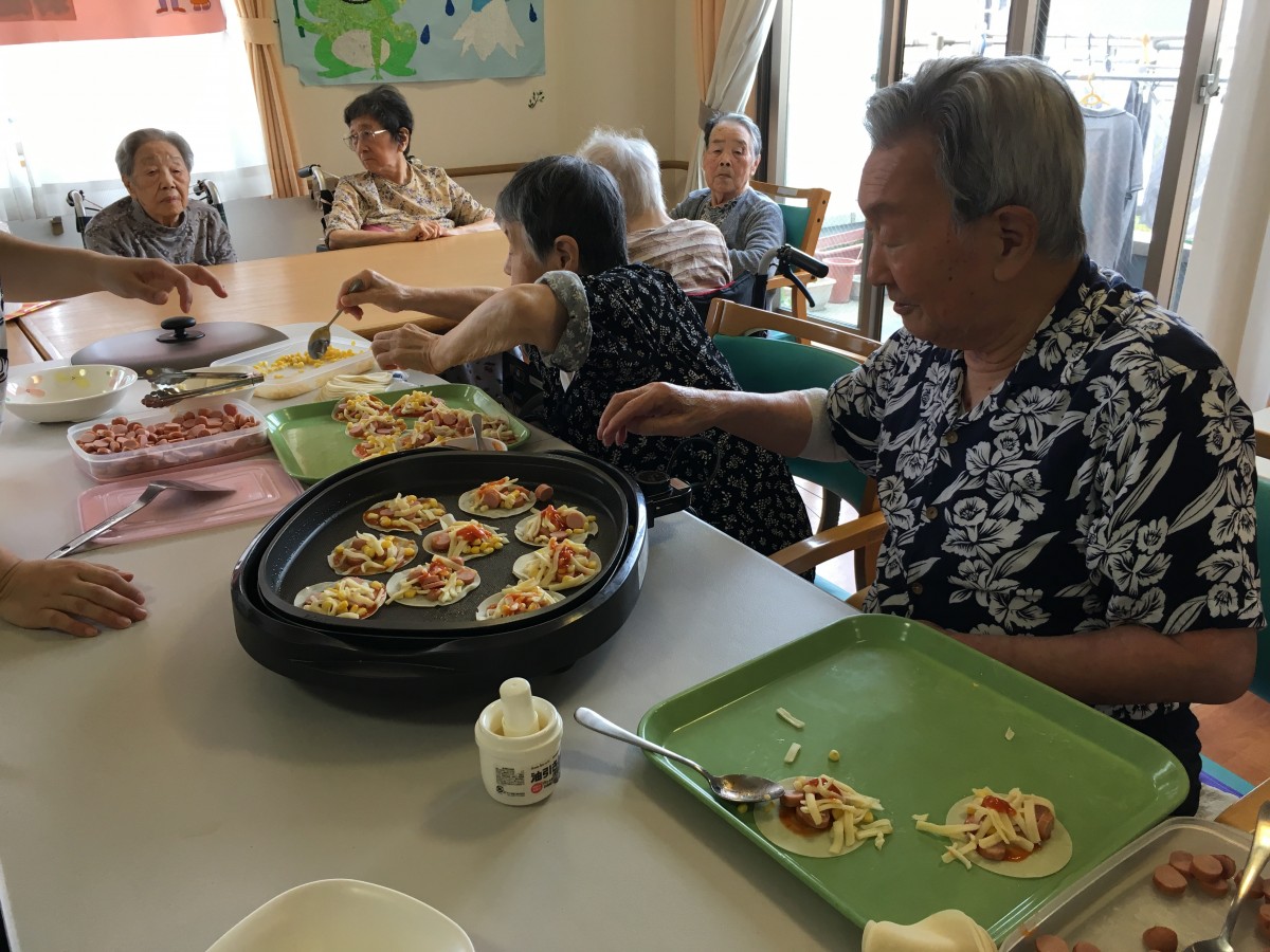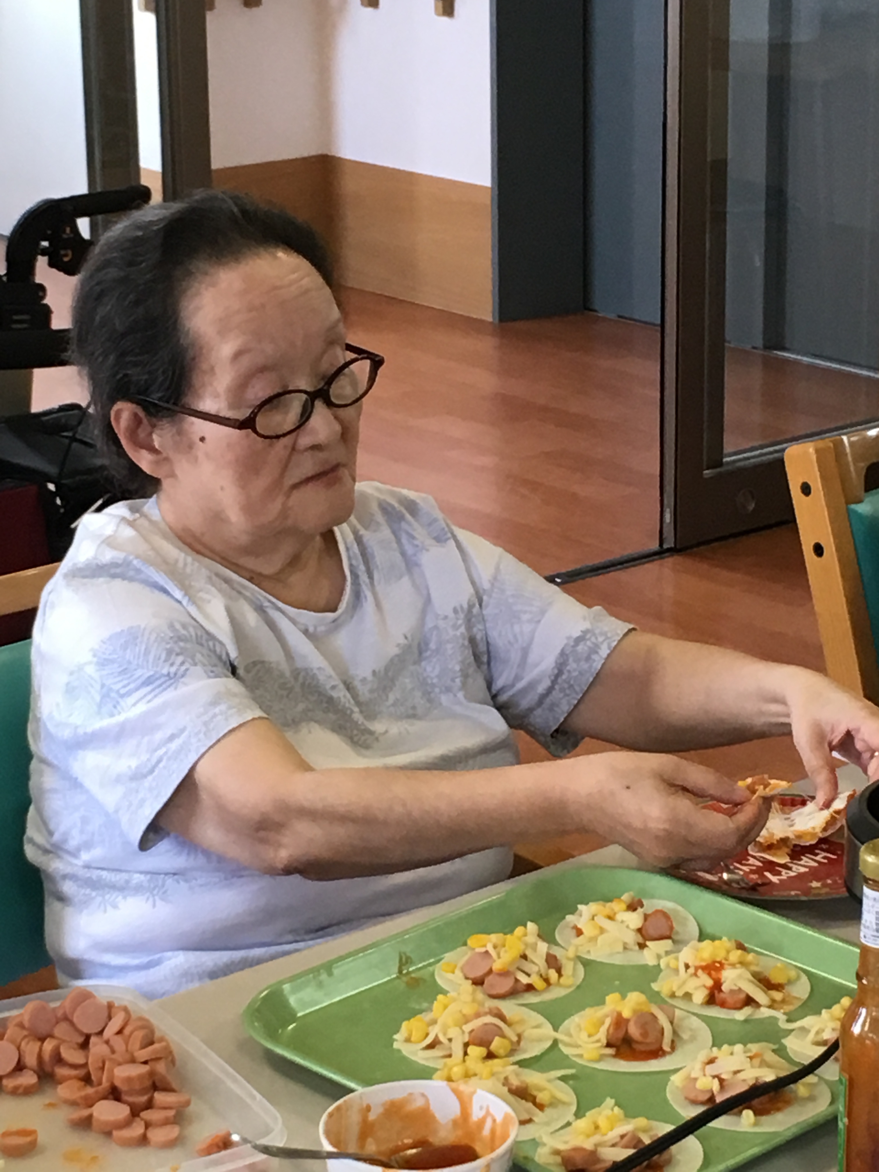 餃子の皮を使ったミニピザを作って食べたり、お誕生日のお祝いをしたりと大変盛り上がりました(^^)/