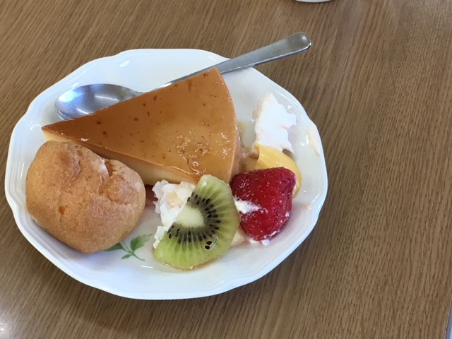 お祝いの歌を唄い、職員手作りのプリンケーキを