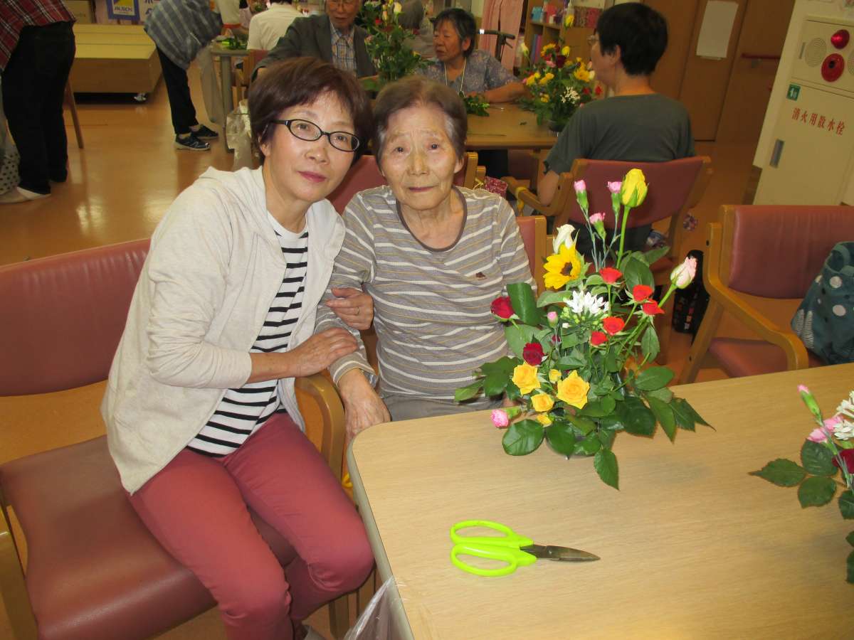 午後は千葉県からフラワーアレンジメントの先生をお呼びして お隣のデイサービスセンター遊・蓮田の会場をお借りして合計20名限定の