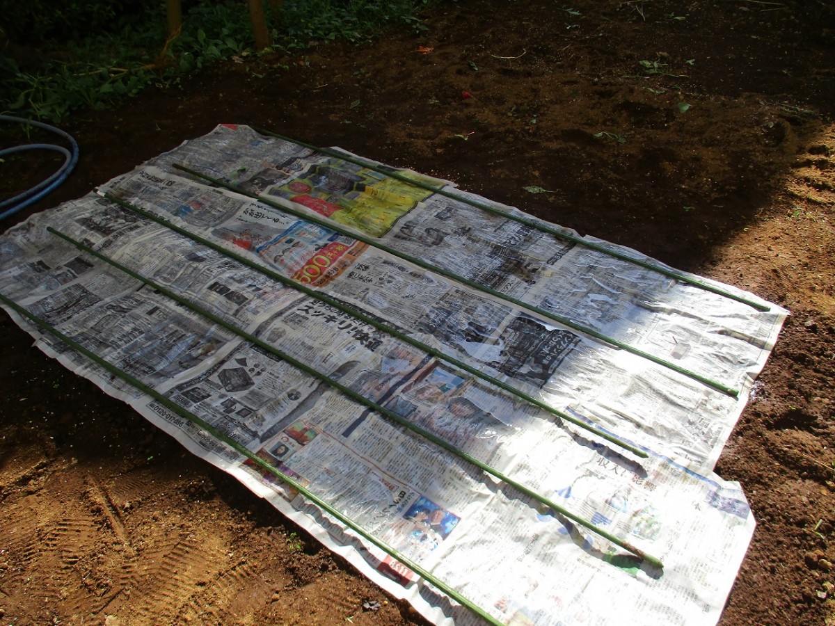 撒いた後に新聞紙を敷き水をまく! そうすると発芽が早くなるそうです(^^)
