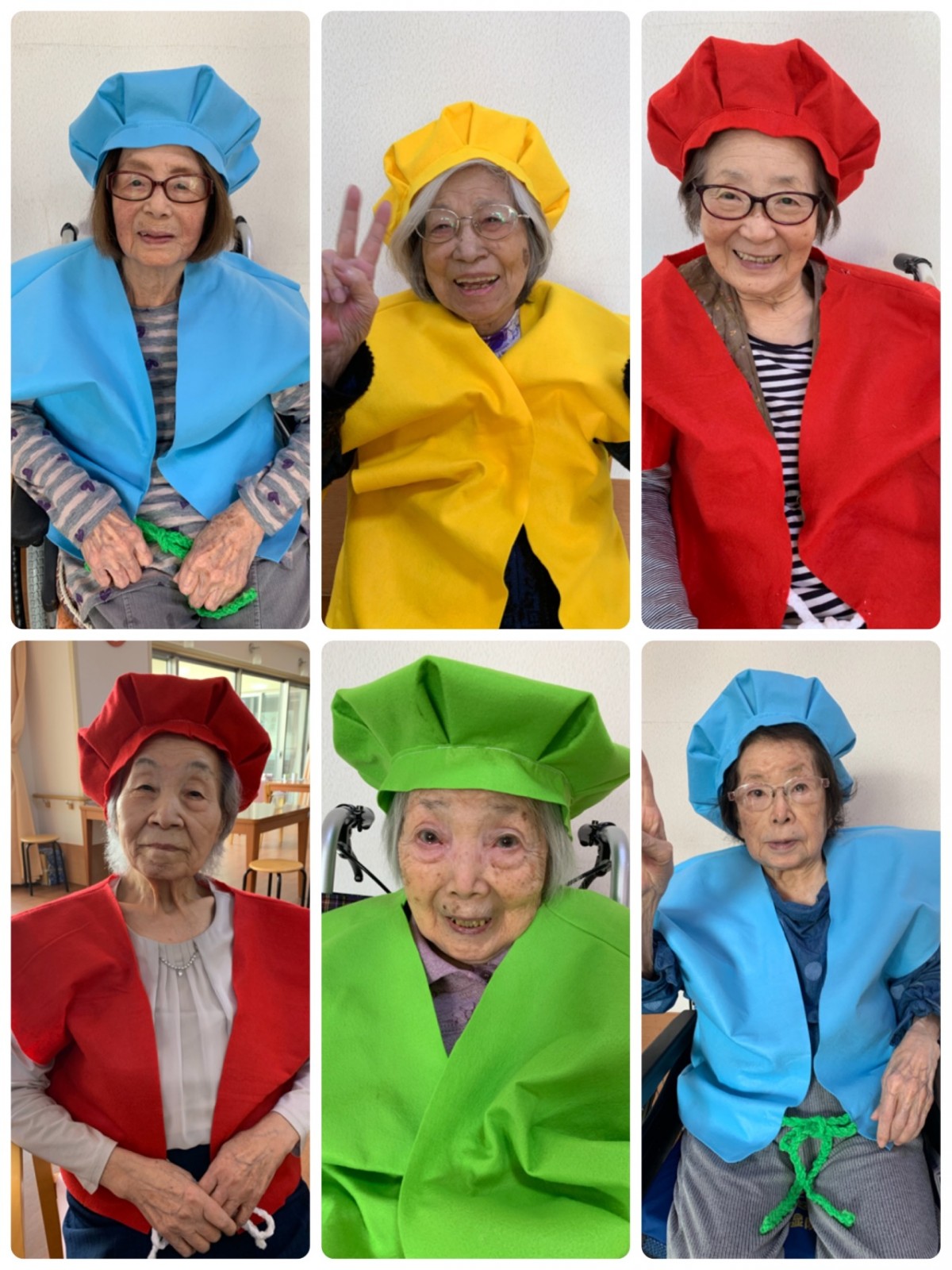 9月の敬老会では、職員が、ちゃんちゃんこと頭巾を作ってくれました!!