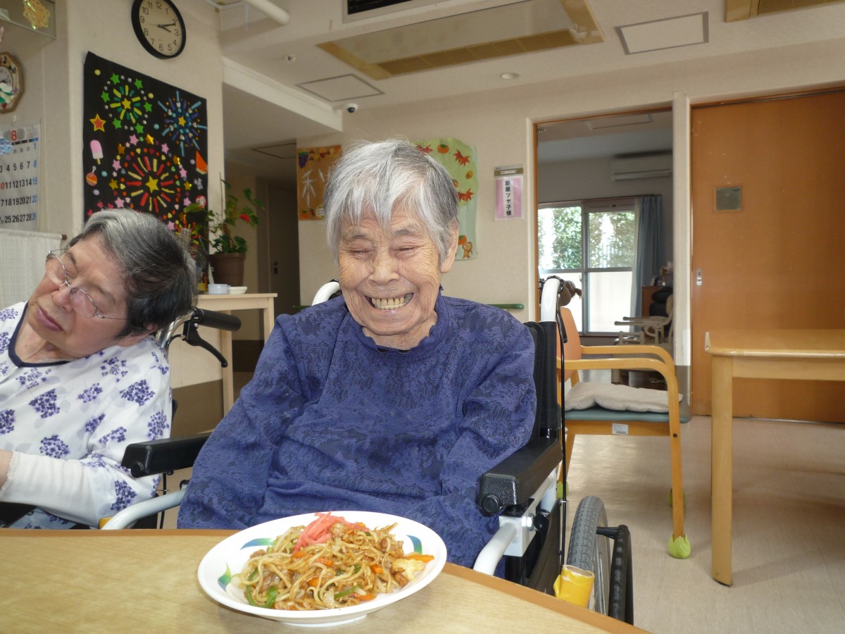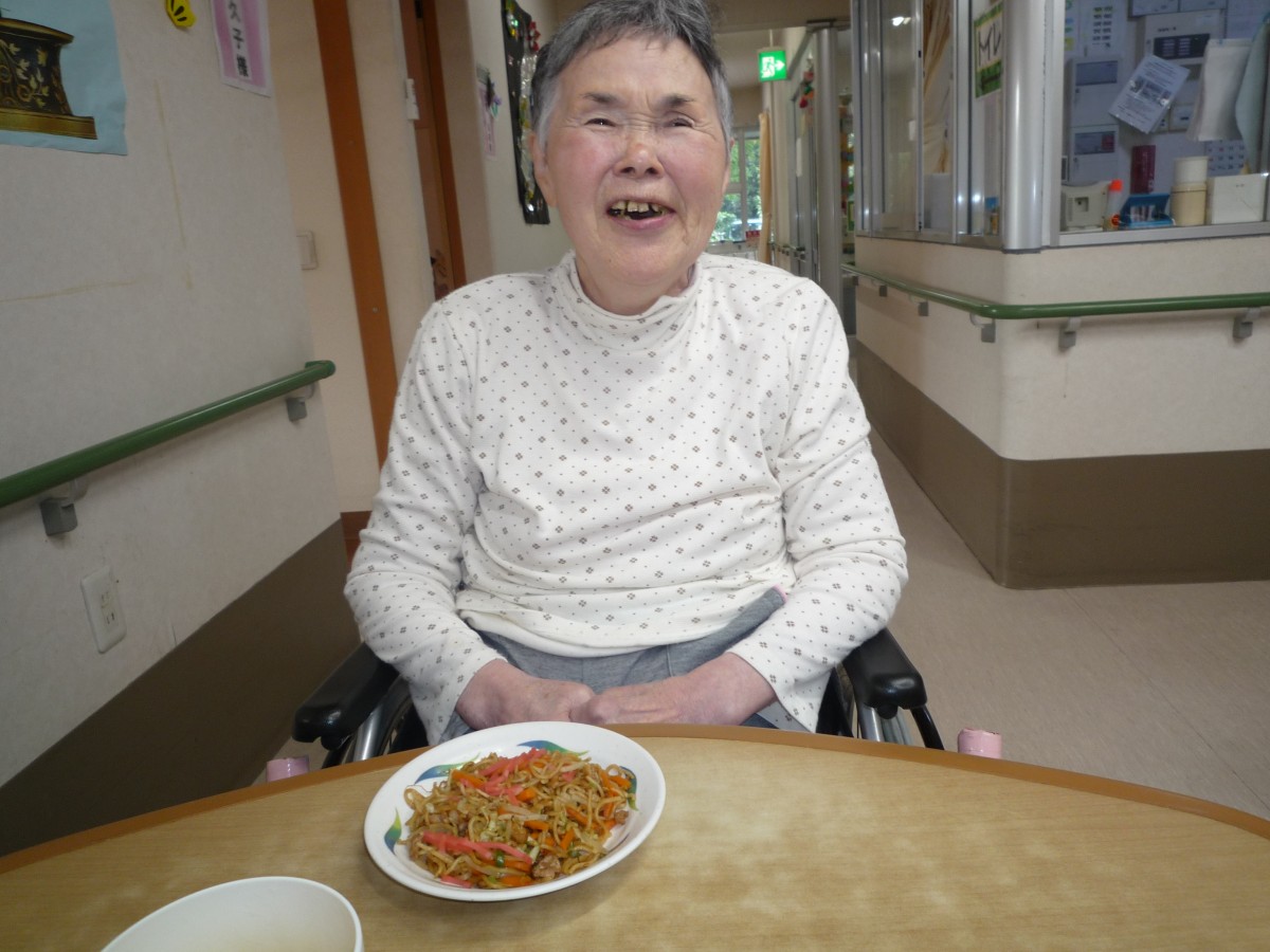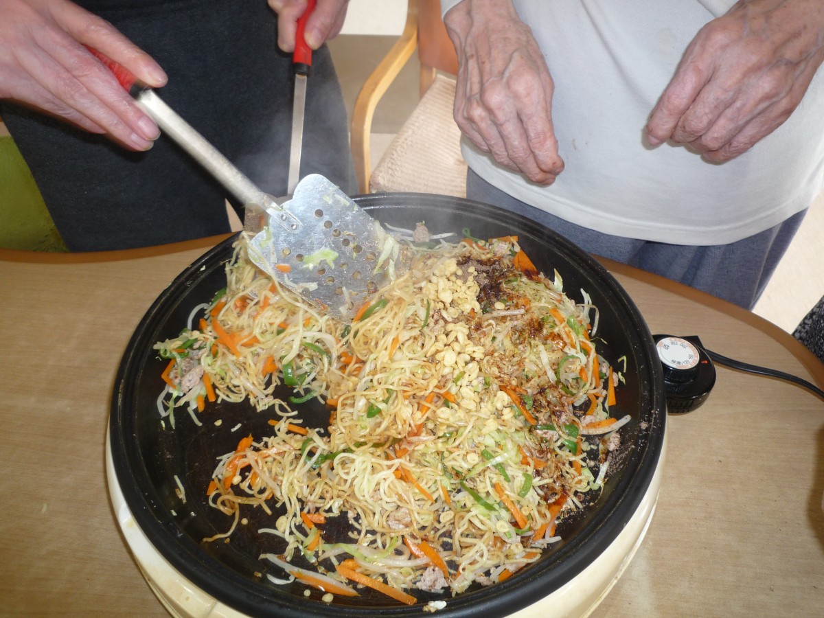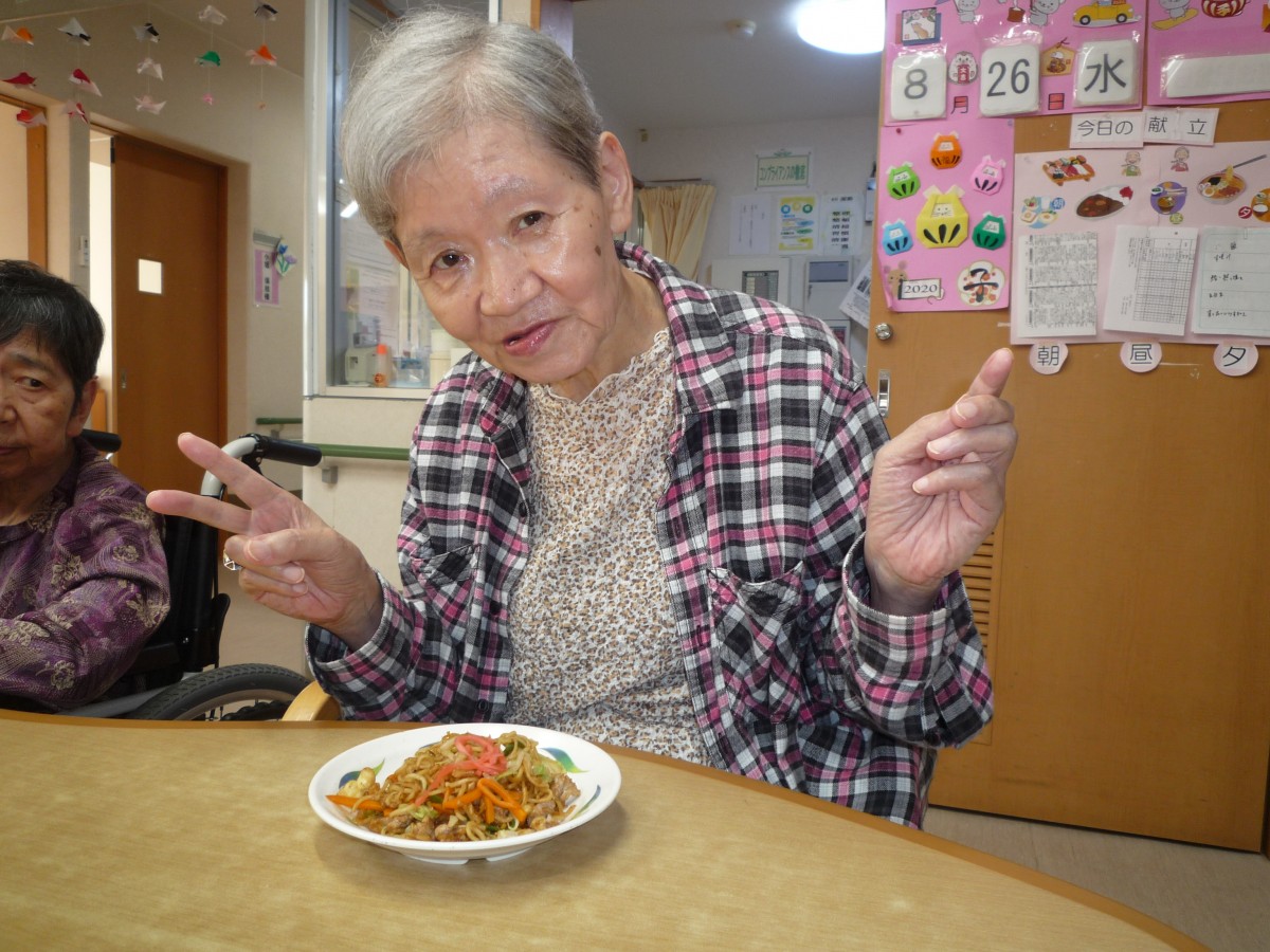 入居者様にもお手伝いして頂き、美味しい焼きそばが完成しました(*'▽')