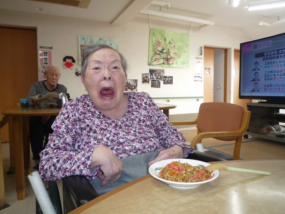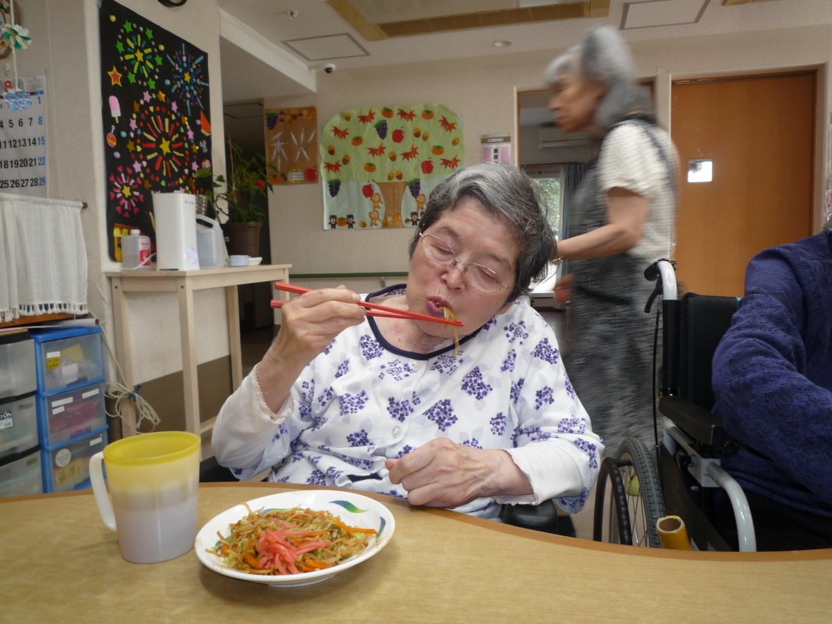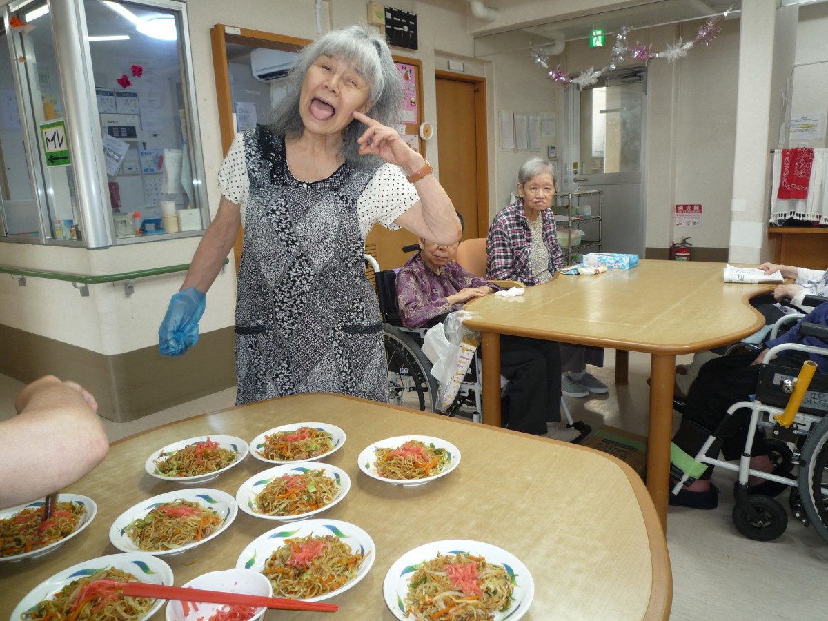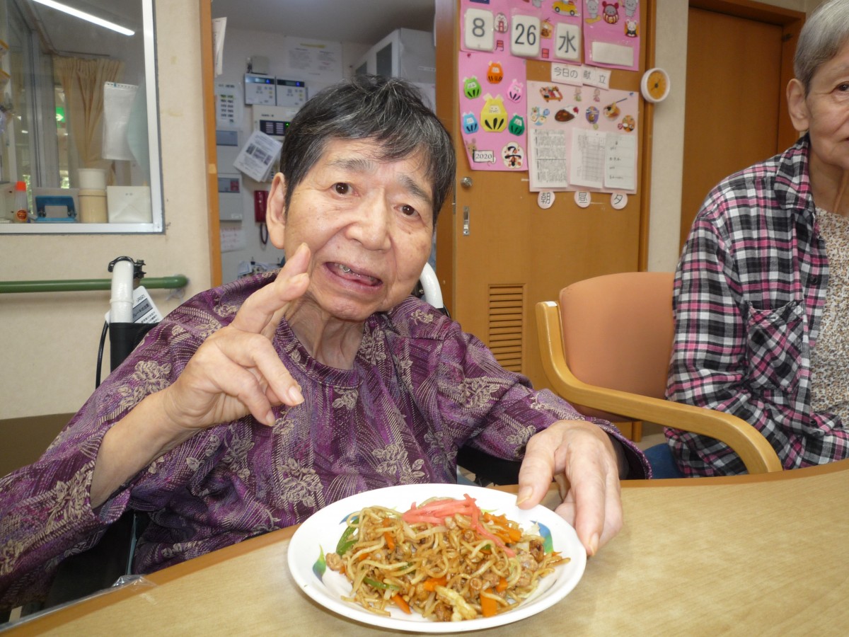 入居者様にもお手伝いして頂き、美味しい焼きそばが完成しました(*'▽')