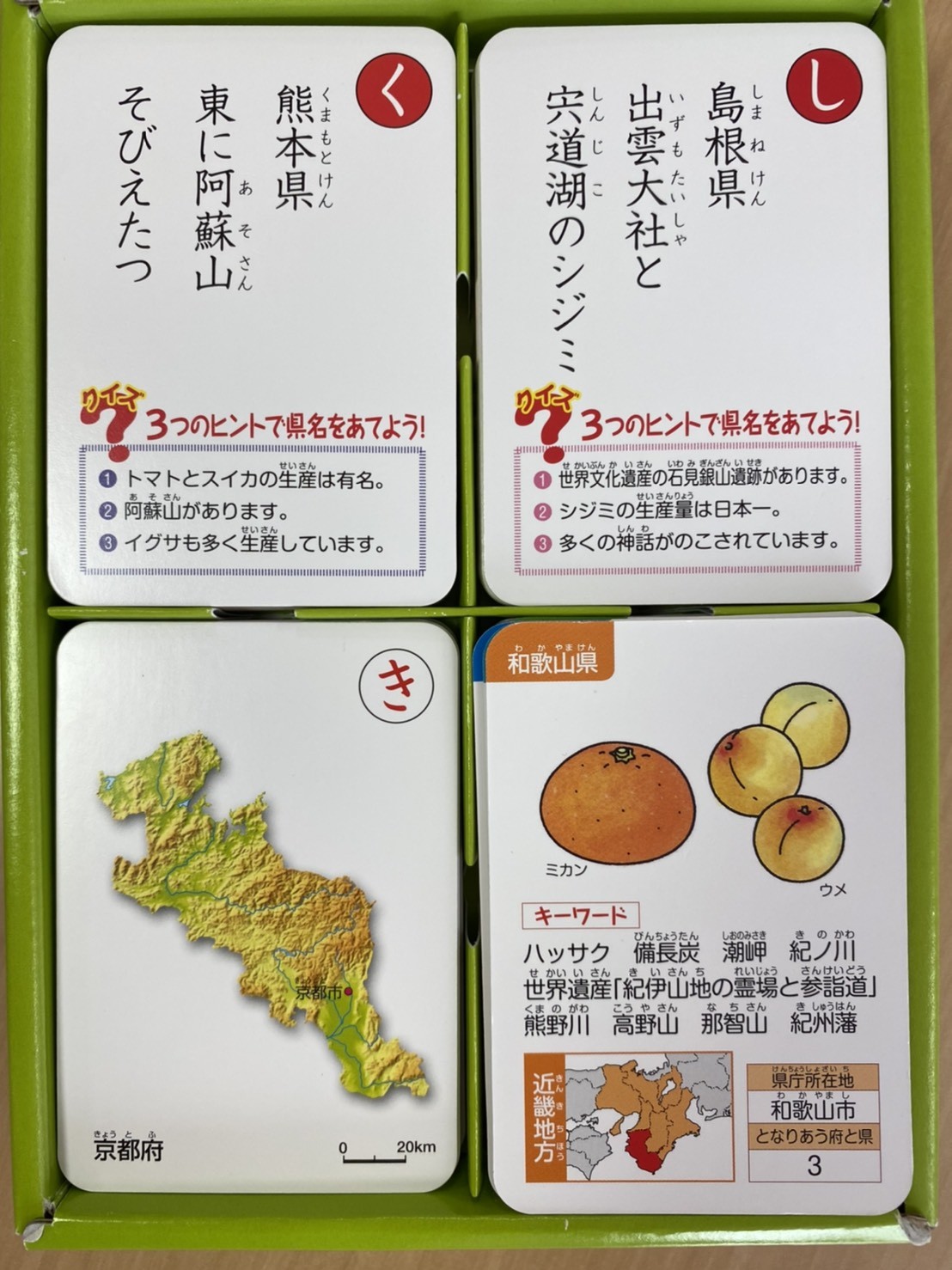 こちらのカルタ、特産物・お国自慢・県庁所在地が分かりやすく☆
