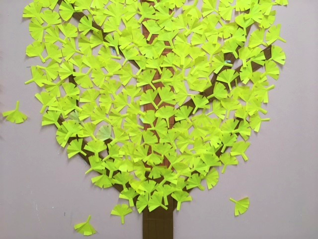 もみじ作りをして頂き、パラパラと貼って頂きました。