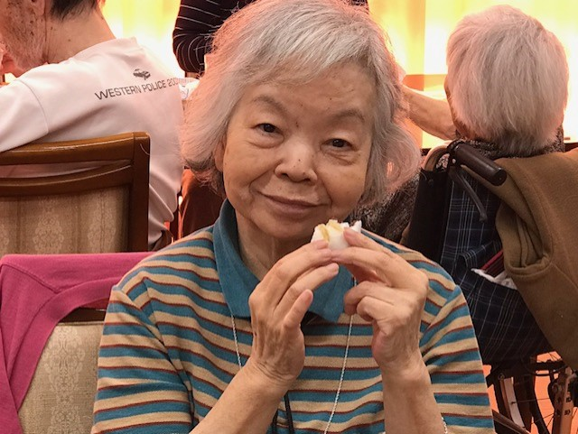 今年はコロナ禍ということで、ボランティアの方々を呼ぶことができませんでしたが、職員とご入居者様で歌を歌ったり、盆踊りを踊ったり、お饅頭を食べたりと、手作り感満載な会になりました。