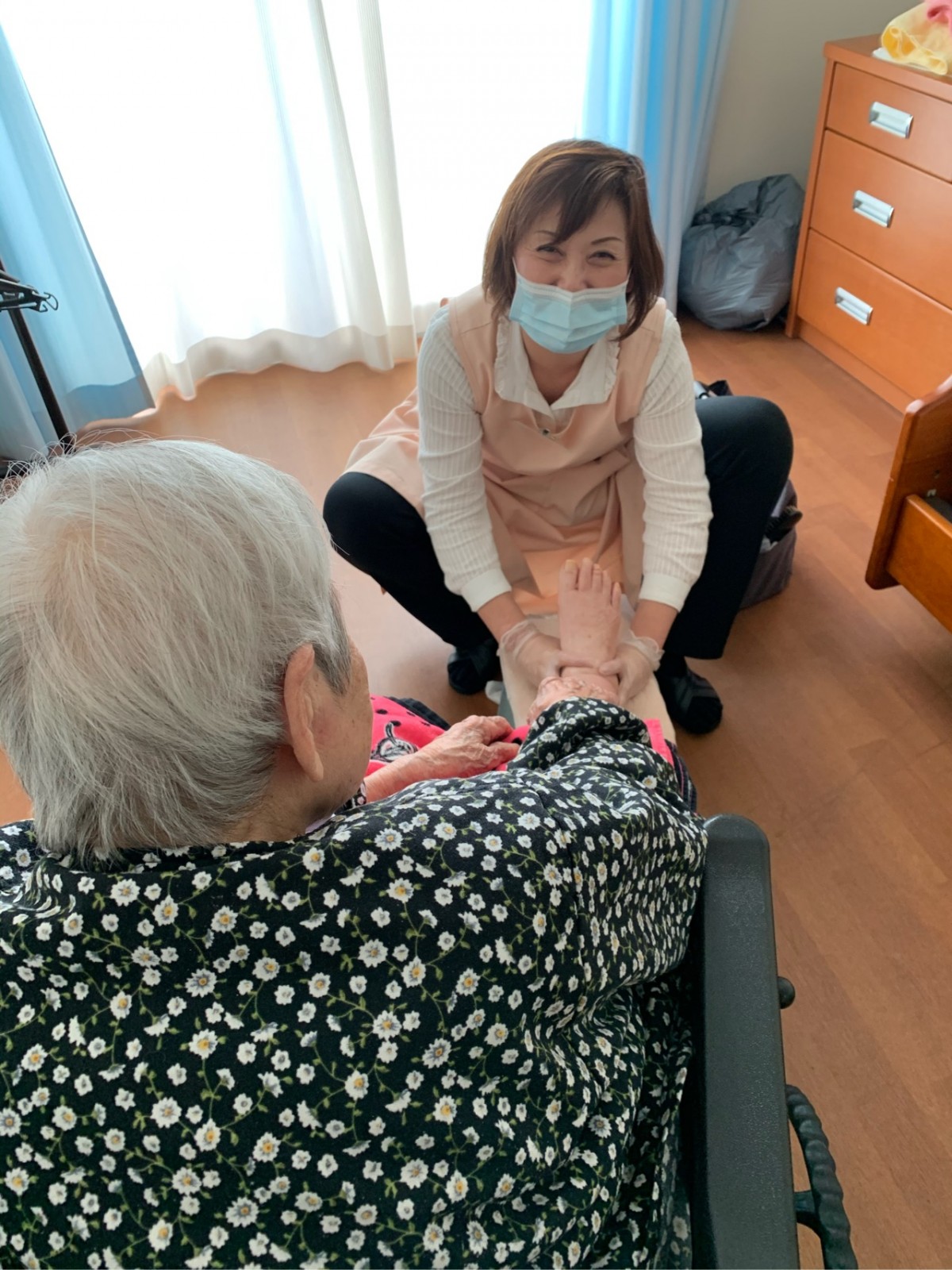 施術中ずっと、入居者様のお話を聞いてくださって、入居者様もお話がとまらないのです!