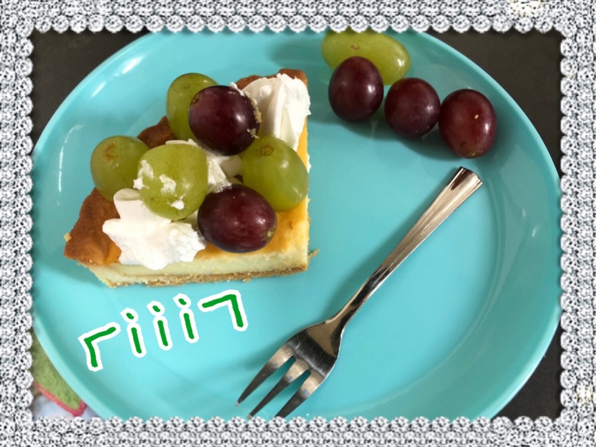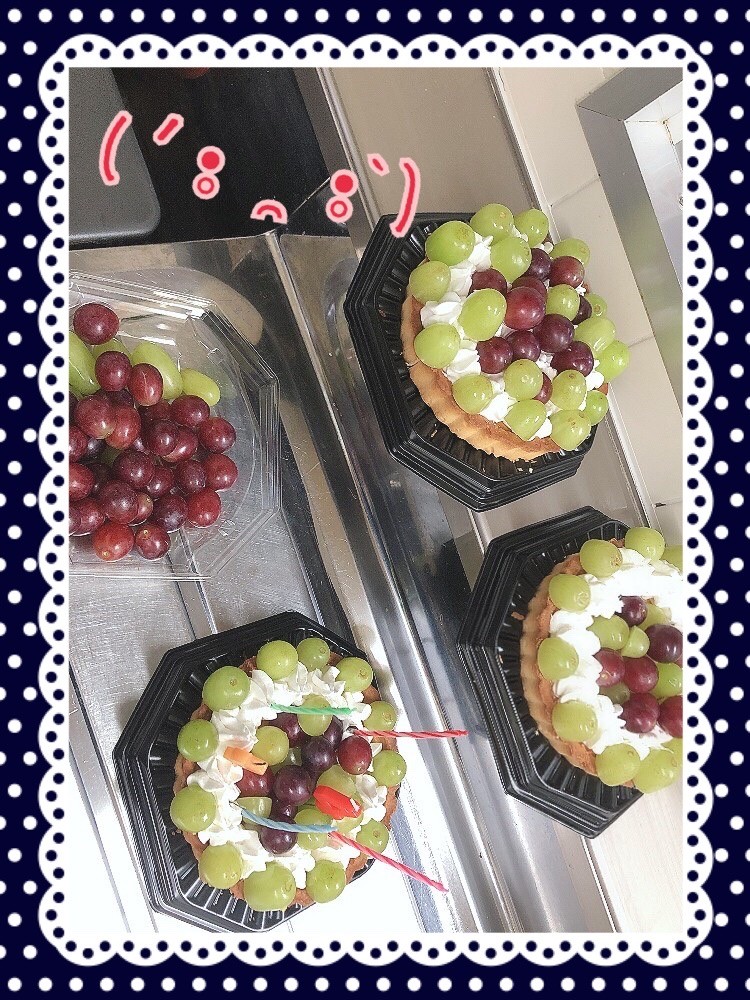 タルトの上にクリームとぶどうを乗せて完成です( 一一)