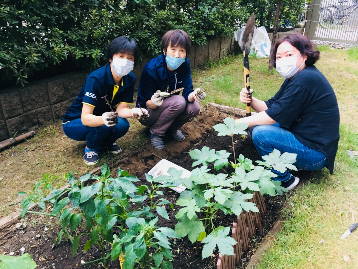 どうですか~?ホーム自慢のお庭で季節の野菜が育てられています。