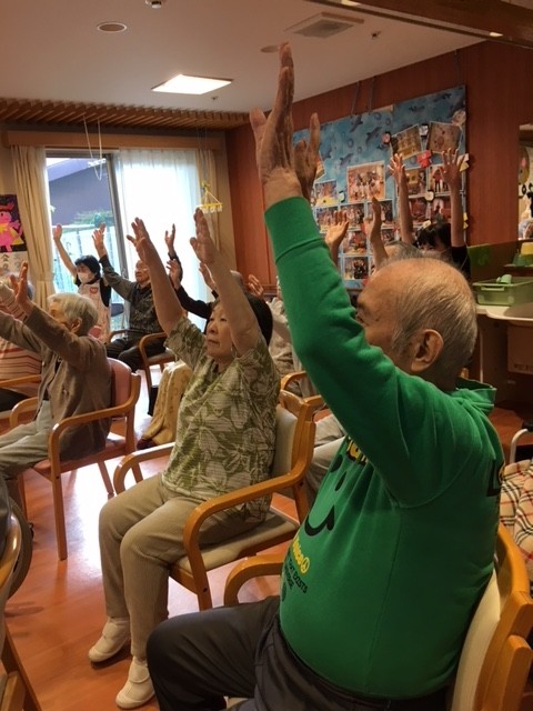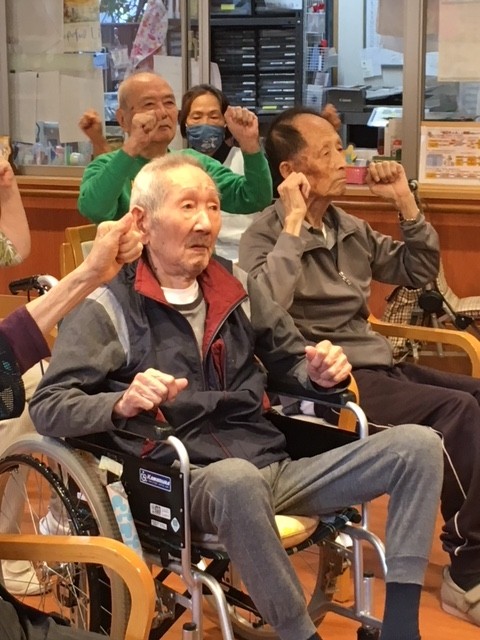 元気よく声を出して身体を動かし体操されています(*^^*)