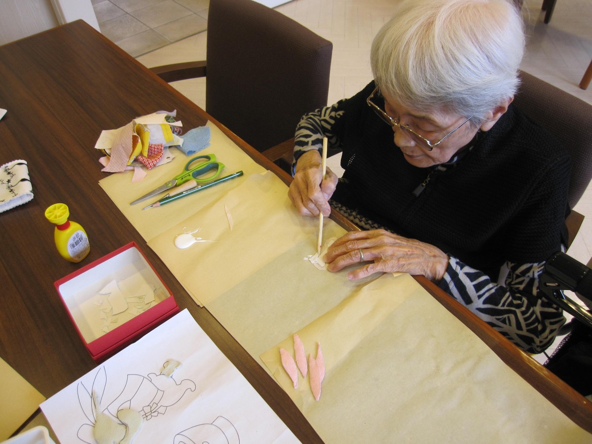 10月から少し細かい押し絵に挑戦しておられます。手芸クラブの方々は皆さん仕事が丁寧ですヽ(^o^)丿