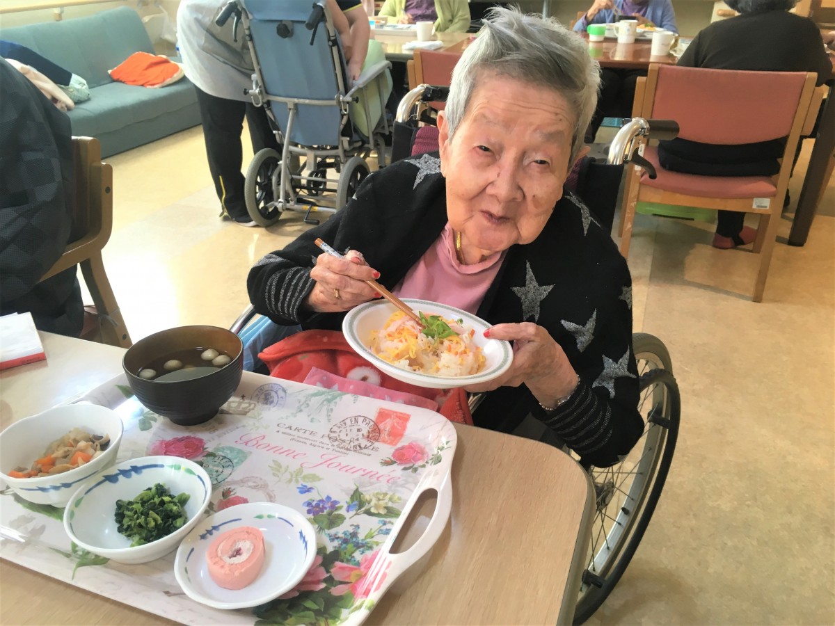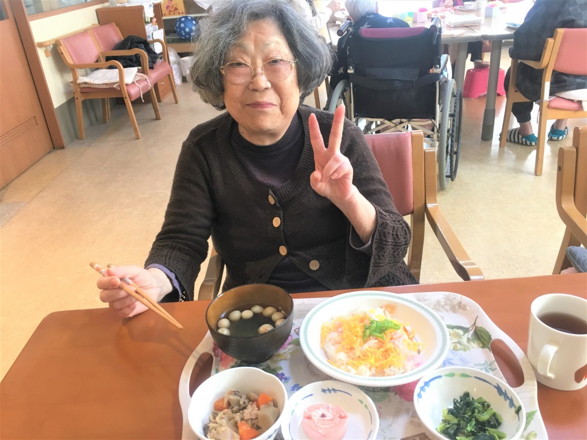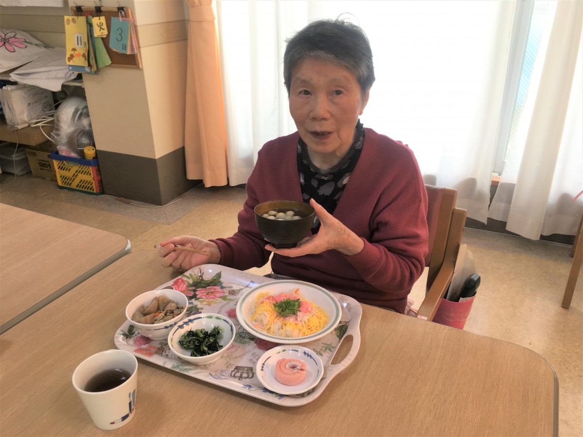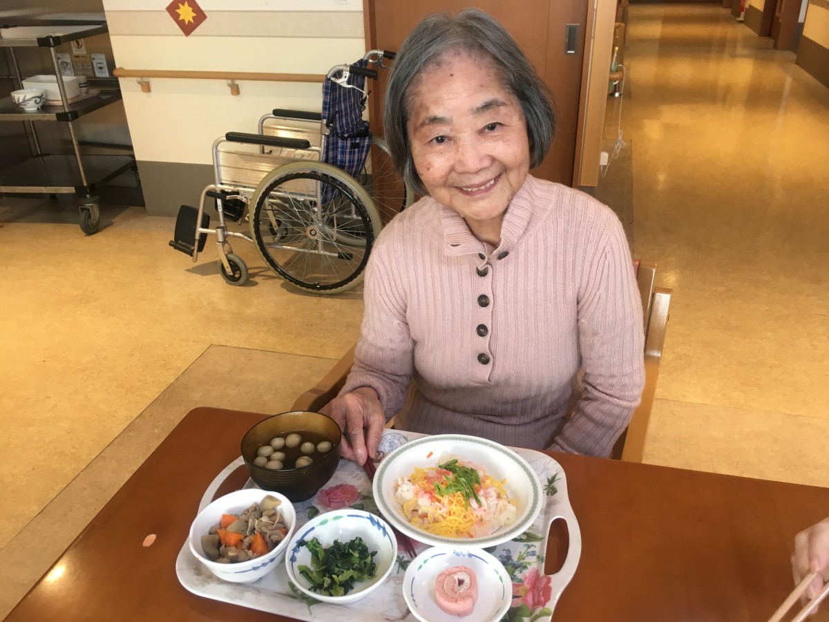 今日のお昼ご飯は“ちらし寿司”でした。「美味しいね!」「味が良いね!」笑顔満載です。