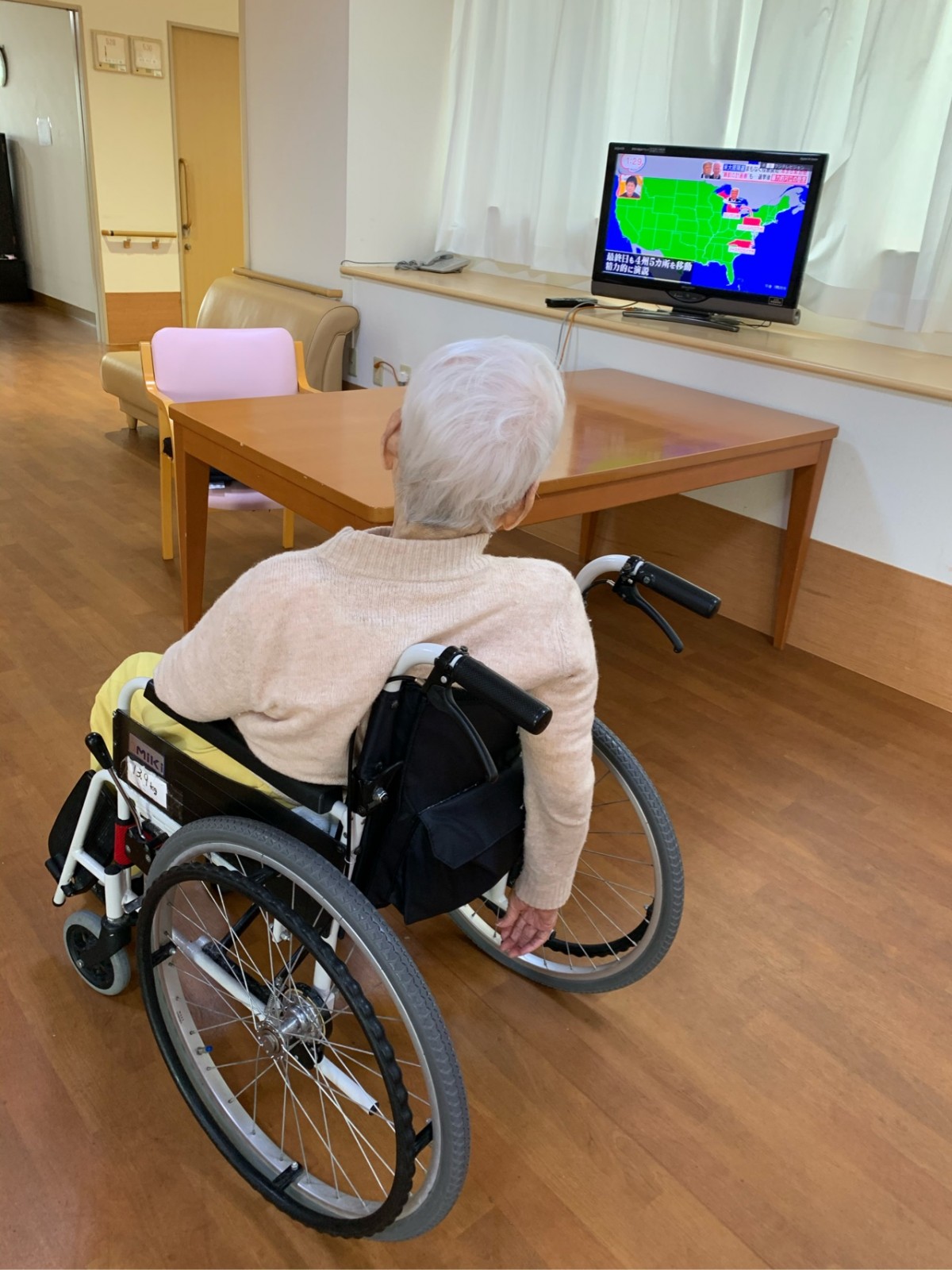お食事時には、「眩しいからカーテン閉めて~」と仰います。