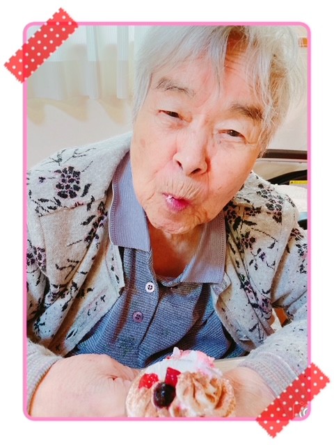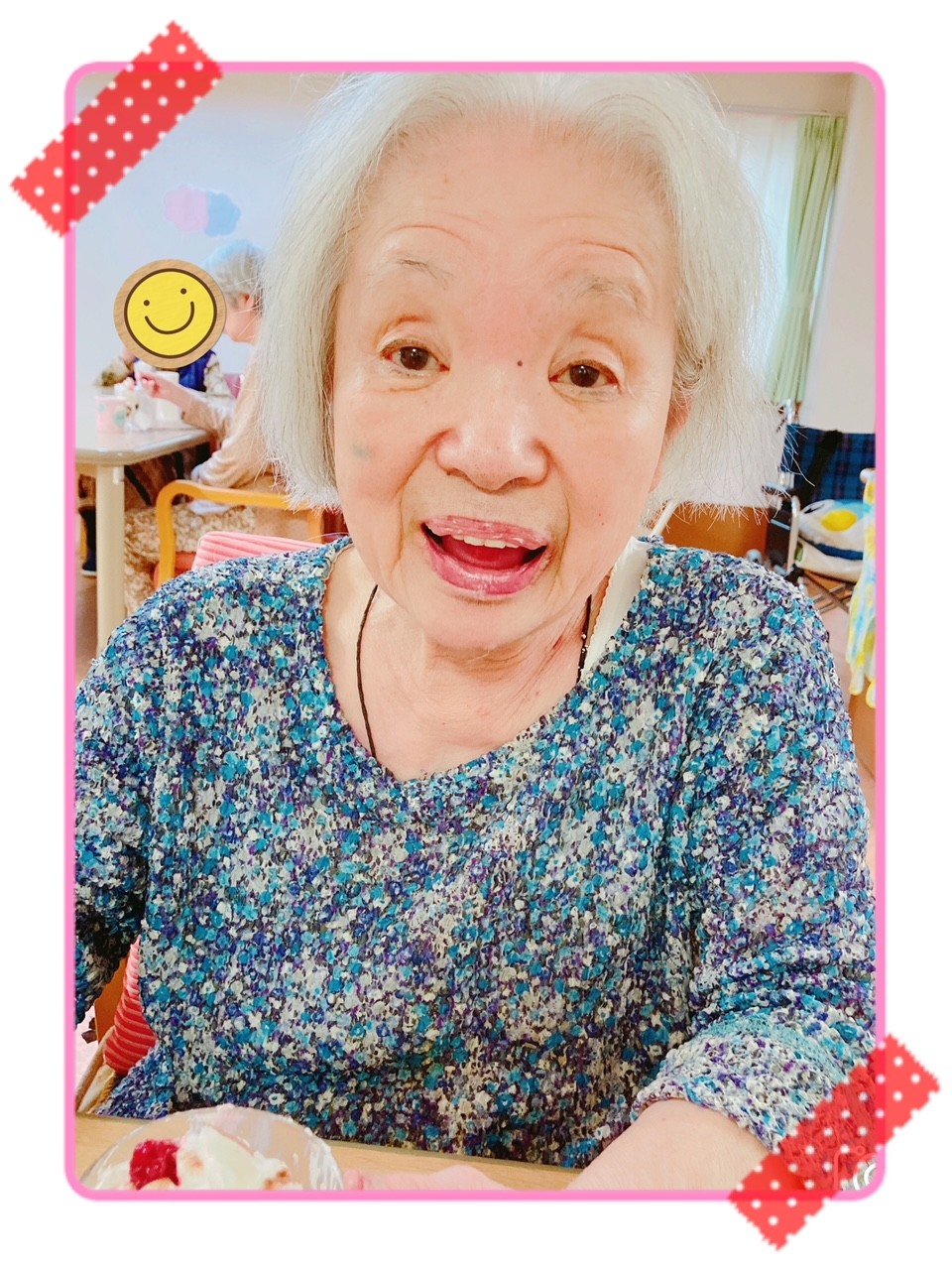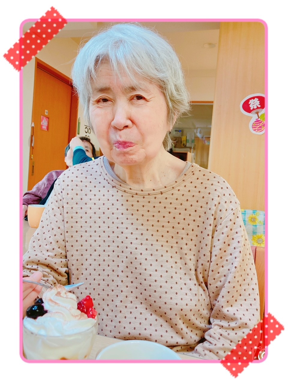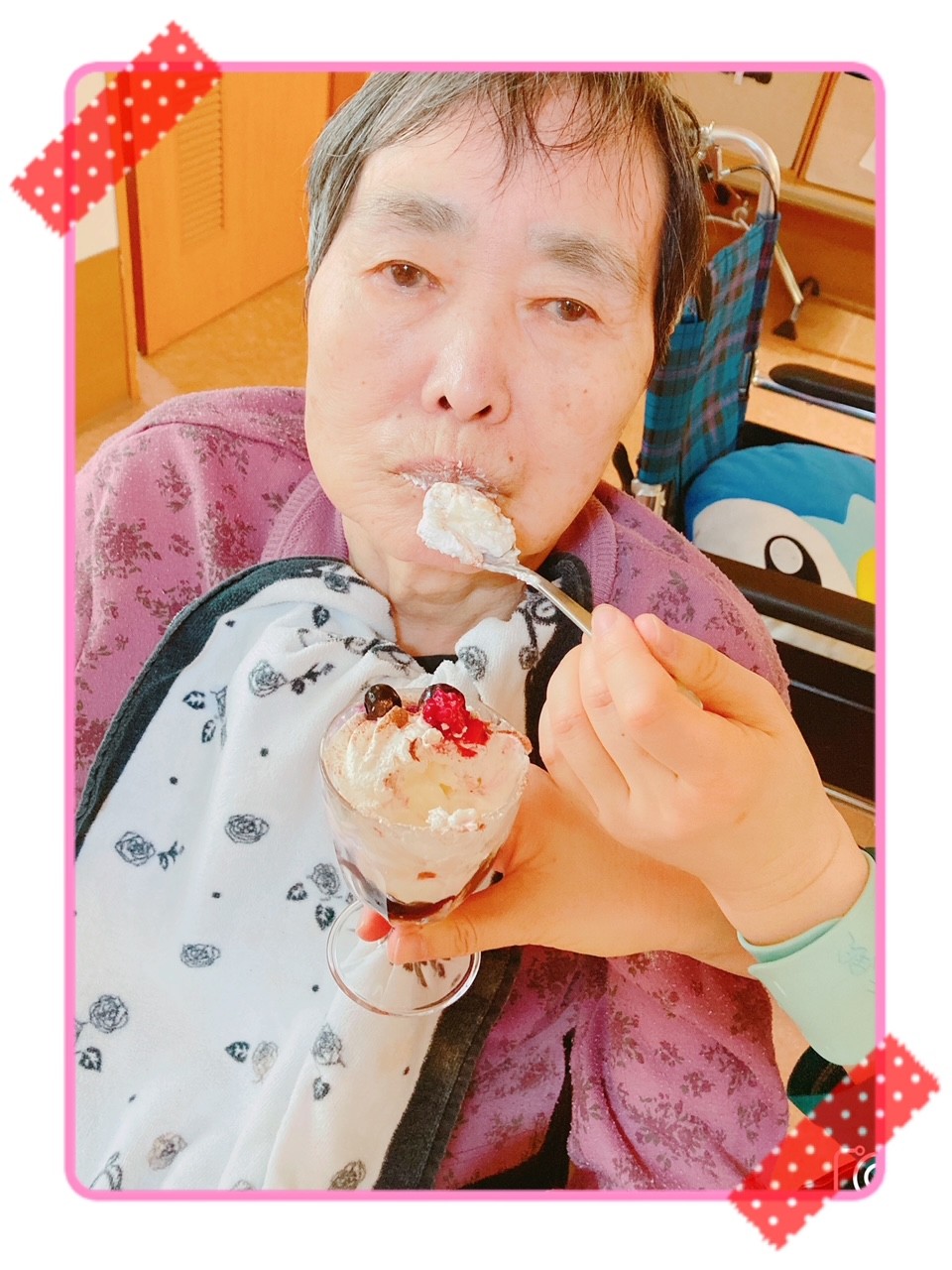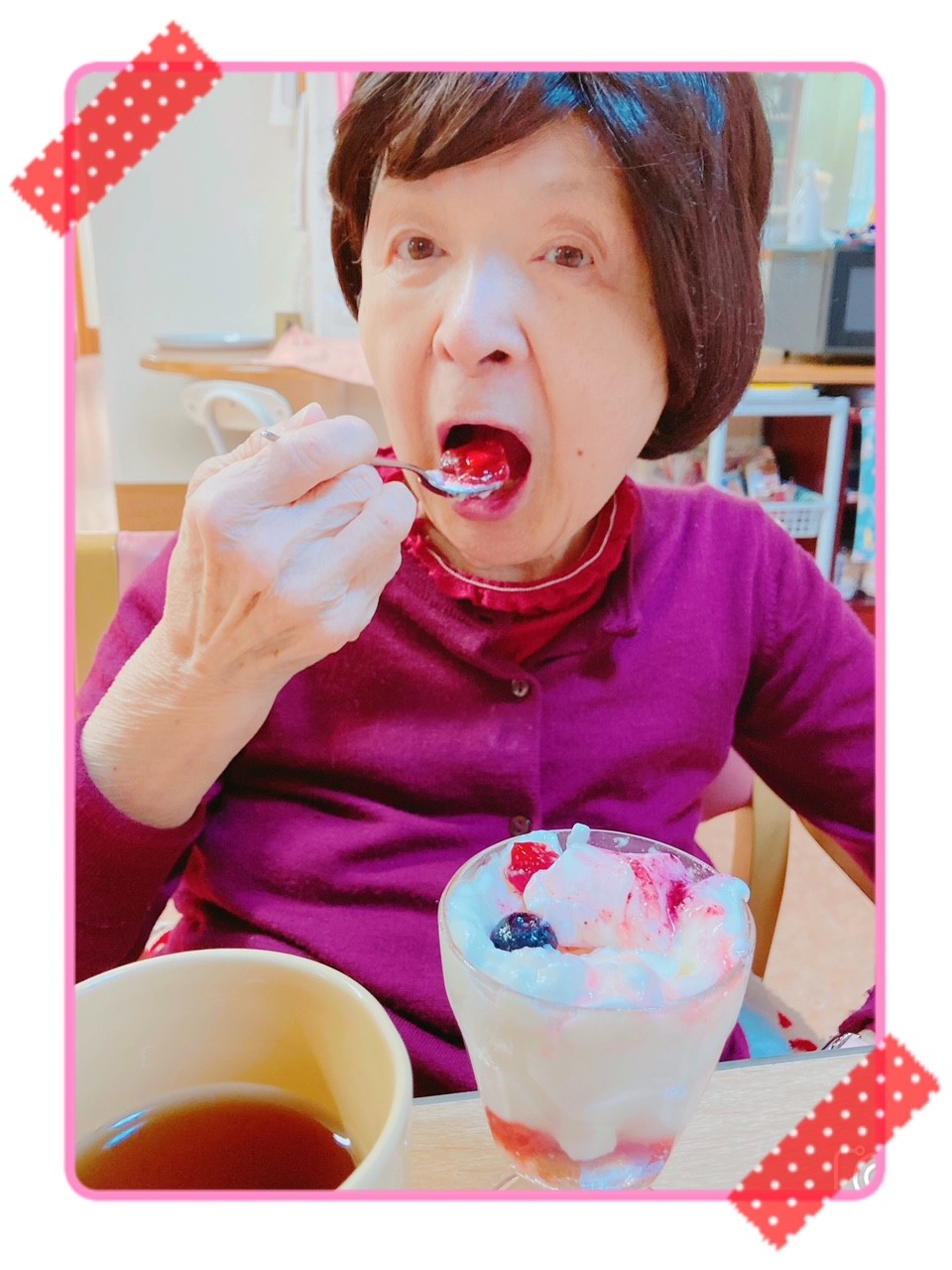 みなさんで誕生日の歌を唄い、職員手作りのティラミスパフェを食べて