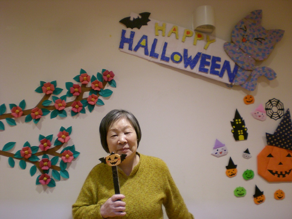 廊下に飾られているハロウィーンと記念撮影を行いました(*^^*)