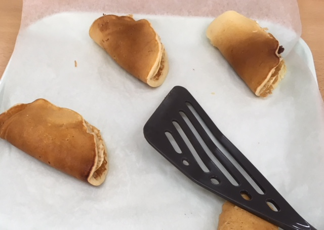 今日は、ホットケーキミックスであまーい香りをさせて焼きま~す。