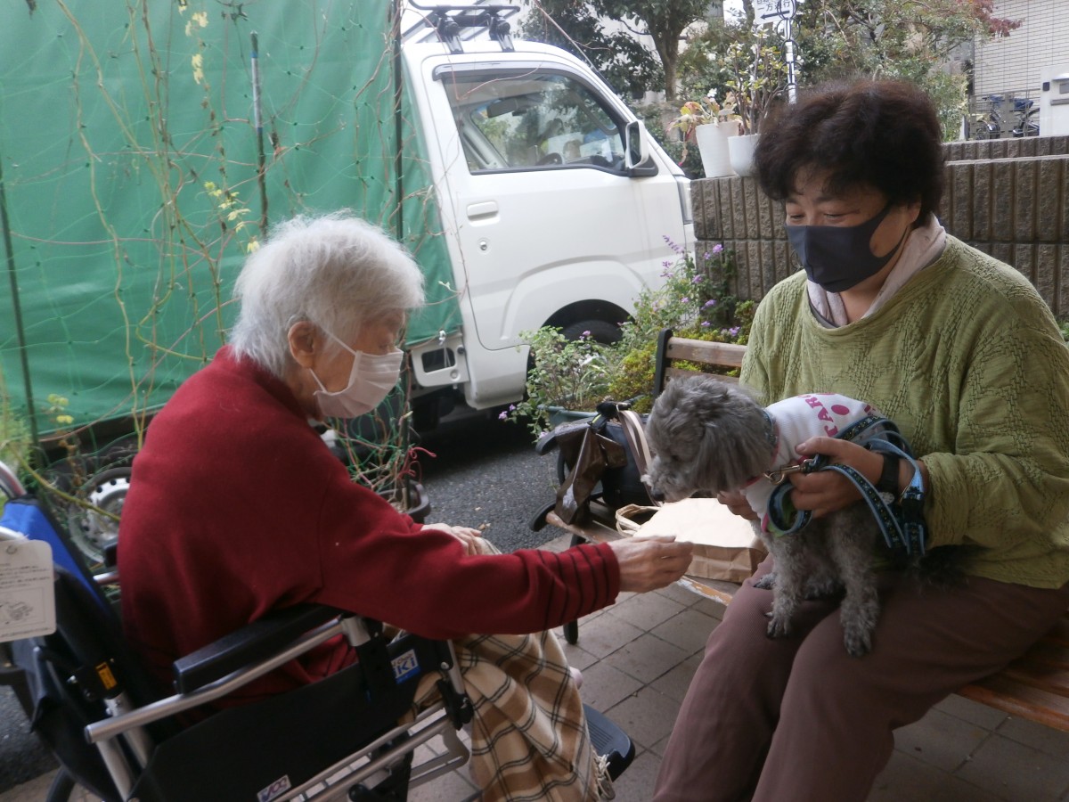 大好きなわんちゃんに会えてとても嬉しそう♪