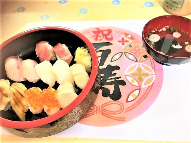 いつもお世話になっています出張寿司の方にお願いして、出前にして頂きました。皆様のお好きな物だけを1人前として注文し、お腹一杯になるようにと、おかわり分も作って届けて下さいました。