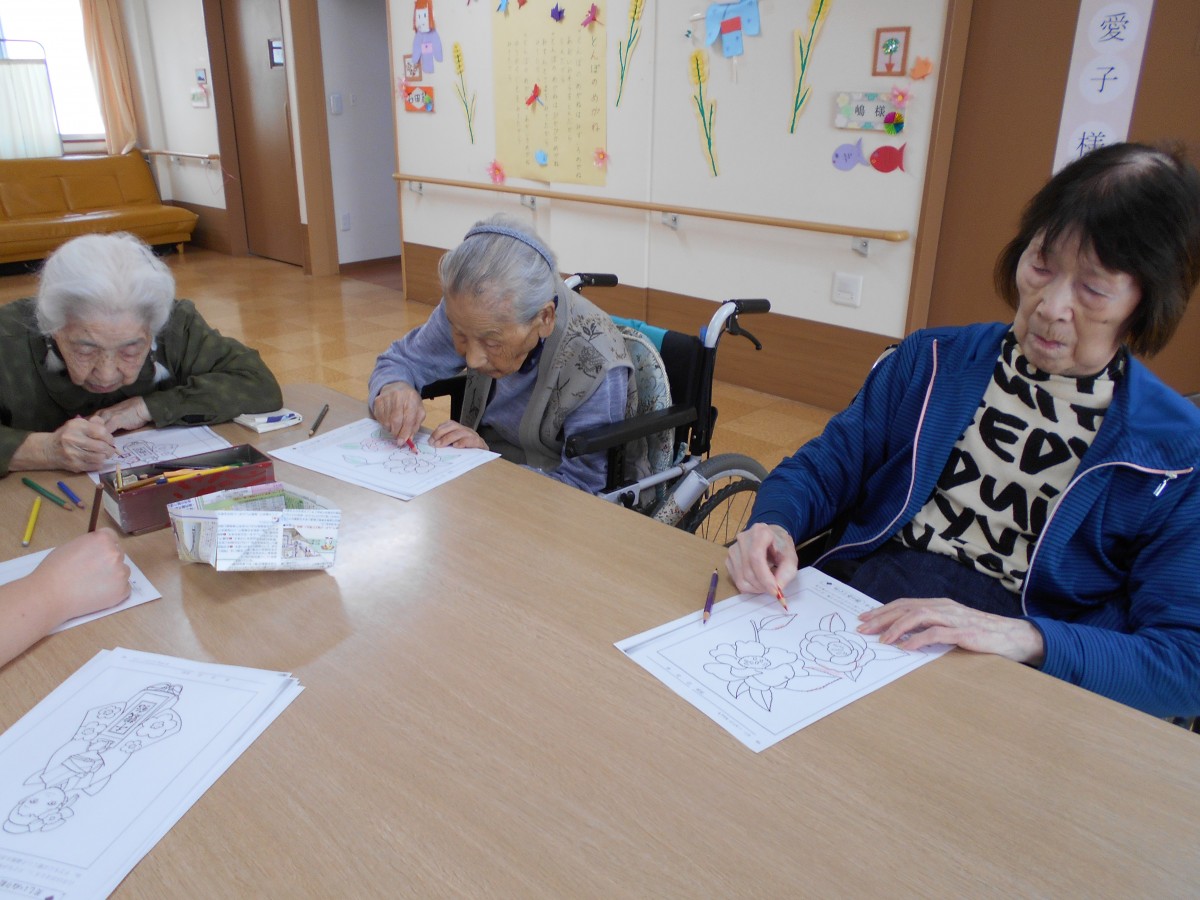グループホームみんなの家戸田では、男性のご利用者様も、もちろん!!女性のご利用者様も大好きなぬり絵レクをされているご様子です!(^^)!