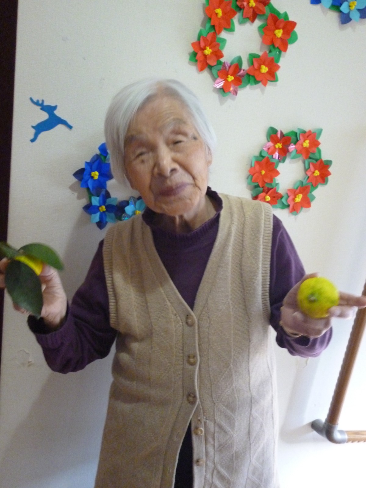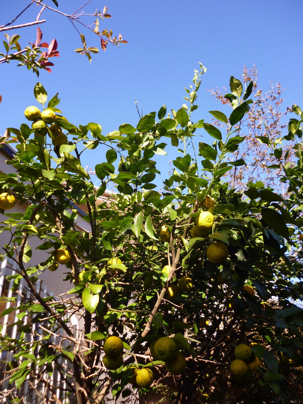 当施設の庭にたくさん実っている柚が色づき出してきました!