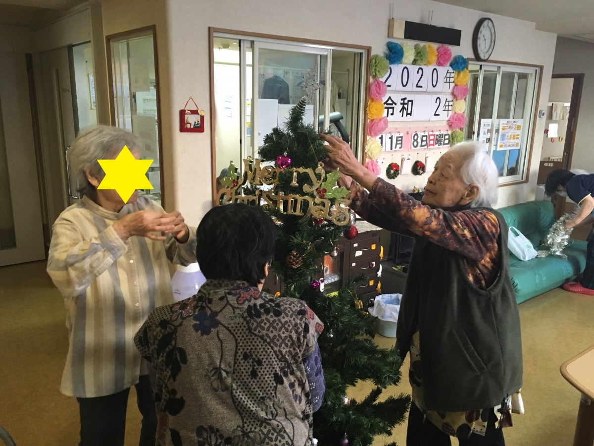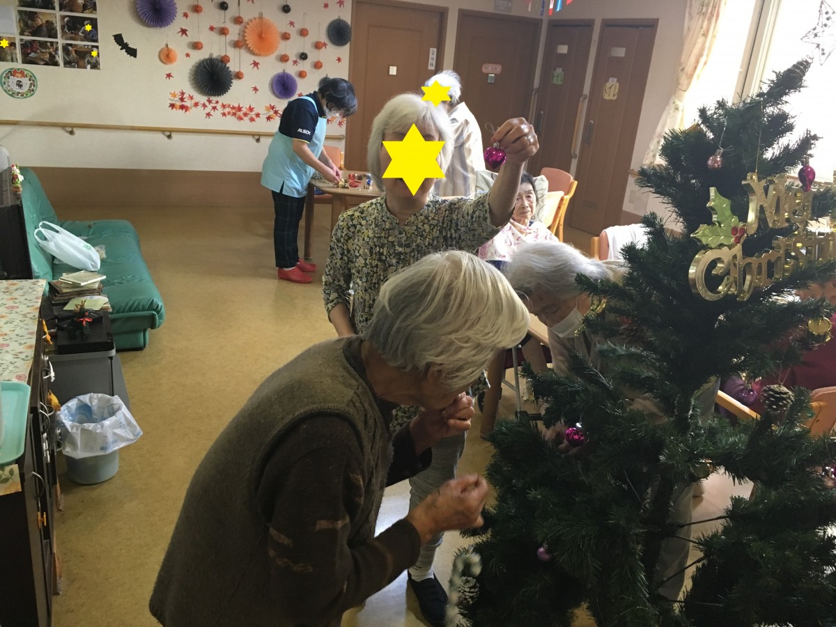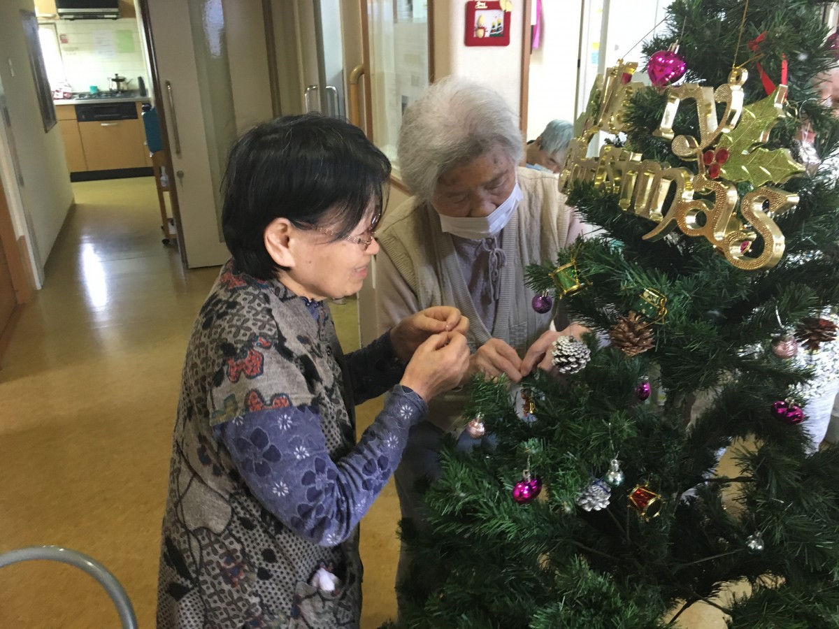 皆さんでツリーの飾り付けを行いました。